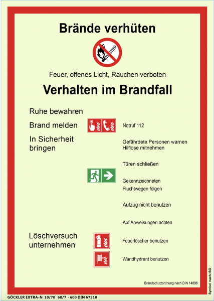Aufkleber DIN A4 „Brandschutzordnung Teil A" Premium Folie Langnachleuchtend Gemäß DIN 14096 | DIN 67510 DIN 53438 | 210 X 297 Mm Made In Germany