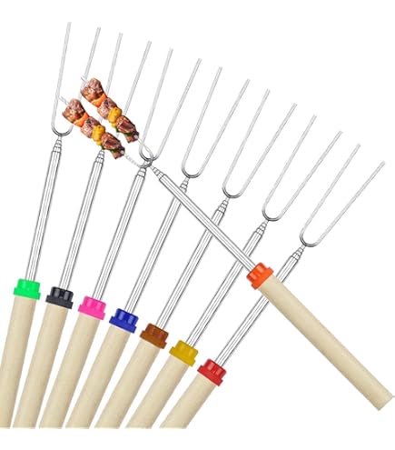 Thstheaven Arshallow Bratstäbe It Holzgriff, Ausziehbare Gabeln, Set