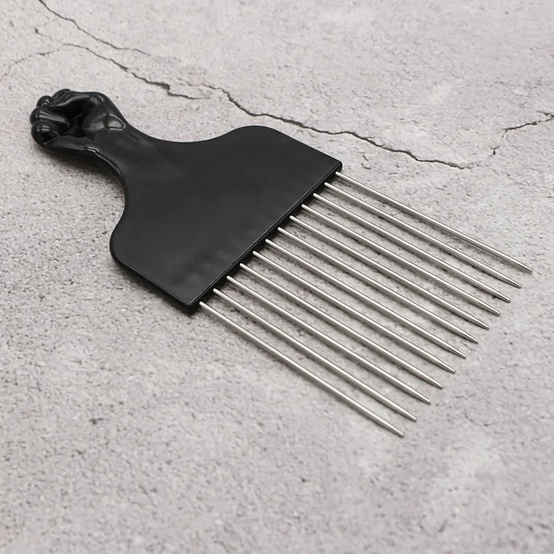 Profession Elle Breite Zähne Faust Form Schwarzer Griff Afro Pick Haarkamm Metall Salon Kamm