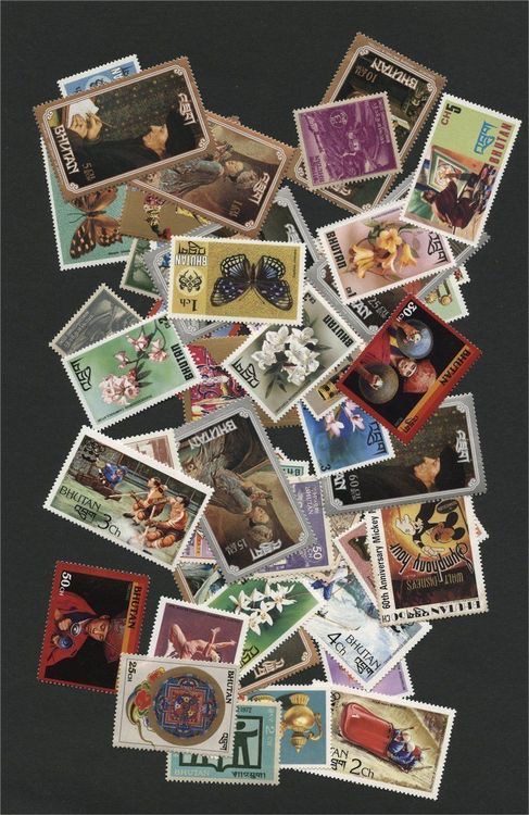 50 Verschiedene Bhutan Briefmarken, 50 Bhutan Stamps