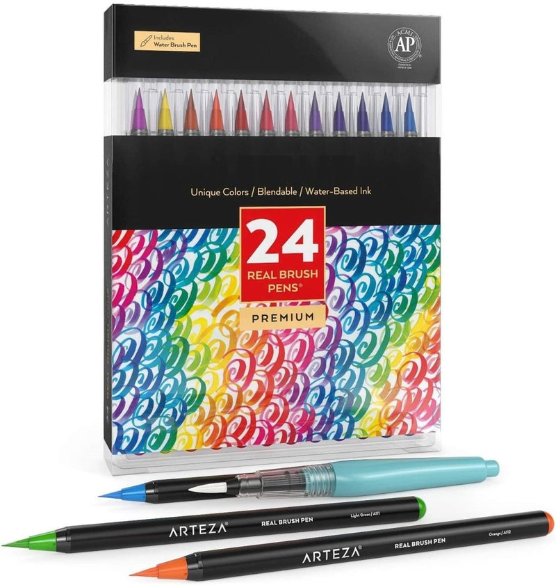 LIEBERGE Pinselstifte-Set (24 Stifte & 2 Wassertankpinsel Die 20 Stifte und der zusätzliche Wasserstift sind verpackt in einer handlichen einfach zu verschließenden Hülle. Kein verspritzen oder verlaufen der Farbe. ✅ HOHE QUALITÄT - Langlebige professionelle Brush Pens für perfekte Ergebnisse. Feine flexible Pinselspitze für vielseitige Anwendungen. WATERCOLOR-EFFEKT - Mit diesem Set kannst du wunderschöne Watercolor-Effekte erzeugen. Einfach in Wasser tauchen und die Farben auslaufen lassen oder den Wasserpinsel benutzen um Farben auf dem Papier zu mischen. HOHE QUALITÄT - Langlebige professionelle Brush Pens für perfekte Ergebnisse. Kein verspritzen oder verlaufen der Farbe Brush Pen Set Brush Pen Und Und Aquarellstifte Mal Sachen Einfach in Wasser tauchen und die Farben auslaufen lassen oder den Wasserpinsel benutzen um Farben auf dem Papier zu mischen. ✅ 20 MISCHBARE FARBEN + 1 WASSERPINSEL - Ideal zum kolorieren von Zeichnungen und Illustrationen. So hast du deine kreativen Brush Pens immer beisammen. Sie sind damit für Handlettering und Kalligraphie bestens geeignet. ✅ WATERCOLOR-EFFEKT - Mit diesem Set kannst du wunderschöne Watercolor-Effekte erzeugen. Dieses wunderschöne Set mit hellen lebendigen Farben lassen dich kreativ werden., Erstelle einzigartige Wasserfarben-Effekte. Einfach in Wasser tauchen und auf das Papier bringen. Die feine weiche Pinselspitze der Stifte lassen einzigartige feine bis breite Pinselstriche erzeugen. Lass die Farben vom Dunklen ins Helle auslaufen. ✅ SICHERHEIT - Geruchlos und ungiftig. Wir » Aquarell Marker & Watercolor Pens « - Jetzt unser großes Sortiment wasservermalbarer Pinselstifte entdecken nur 1-3 Tage Lieferzeit Top-Marken