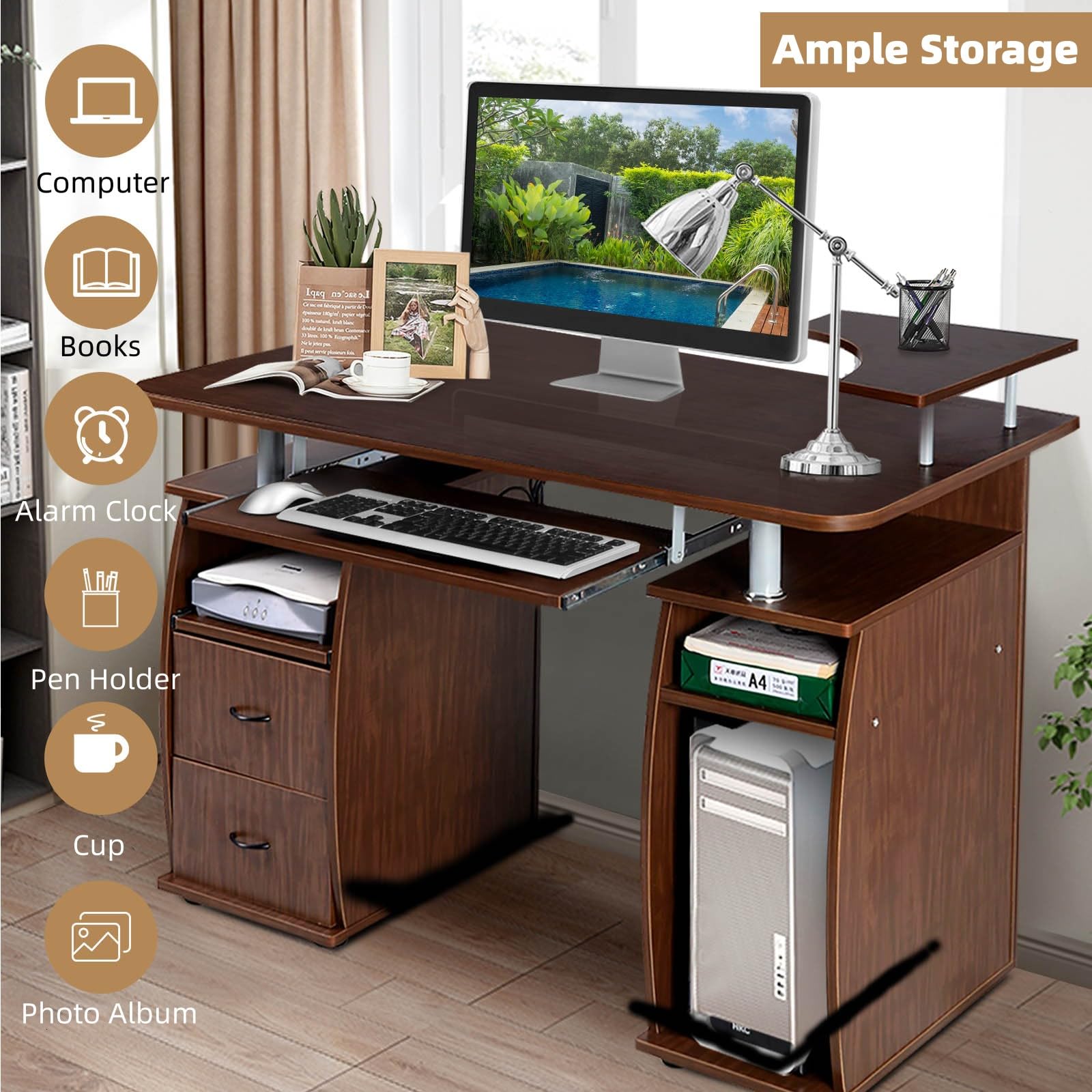 Die perfekte Größe für kleine Räume wie Wohnungen, Schlafsäle oder gemütliche Büros, kombiniert Funktionalität mit minimalistischem Charme, um Ihren Arbeitsbereich zu maximieren, ohne Ihren Wohnraum zu überfüllen. Technische Daten: Farbe: Schwarz/Weiß. Der Zusatz einer abnehmbaren und faltbaren Stoffschublade ermöglicht es Ihnen, Ihren Stauraum individuell zu gestalten. Schreibtisch 90 Cm Lang Computertisch GRASSE Rollbar Buche 90 X 71 X 50 Cm Mit Tastaturauszug, Laptop Tisch Auf Feststellbaren Rollen, PC-Tisch Mit Drucker-Ablage Platzsparend, Schreibtisch Für Kleine Räume Schreibtisch, Breite 90 Cm Gewichtskapazität der Schrankoberfläche: 20,4 kg. Arbeiten oder lernen Sie effizienter mit diesem L-förmigen Computertisch mit Regalen! Abgerundete Ecken verringern das Risiko von versehentlichen Stößen und Verletzungen. nicht in deutscher Sprache). Er wurde entwickelt, um eine umfangreiche Nutzung zu unterstützen, egal ob als Ihre erstklassige Workstation oder das Zuhause für Ihr Gaming-Setup, um Stabilität unter Last zu gewährleisten. ODK Schreibtisch mit 2 Schubladen, Computertisch mit Tastaturablage Organisation leicht gemacht: Mit praktischen Dual-Desktops bietet unser Home-Office-Schreibtisch reichlich Platz für all Ihre Aktivitäten. Egal, ob Sie ihn als Computertisch, Schreibplatz oder Schminktisch verwenden, sein minimalistisches Design sorgt für eine saubere, moderne Atmosphäre, die eine organisierte Umgebung fördert. Organisieren Sie effizient mit einem offenen Aufbewahrungsregal und einem Schrank mit einer herausnehmbaren Stoffschublade. Leicht zu reinigende Oberfläche ermöglicht eine problemlose Wartung. Rutschfeste Fußpolster bieten Bodenschutz Montage ist vor Gebrauch erforderlich. Maximieren Sie Ihren Arbeitsplatz mit unserem vielseitigen Computertisch. Abnehmbare und faltbare Stoffschublade erfüllt Ihre persönlichen Aufbewahrungsbedürfnisse. Offenes Regal bietet reichlich Platz für Bücher, Akten und andere wichtige Dinge. Tangkula Eckschreibtisch mit Stall & Ladestation, platzsparender Computertisch mit Ablagen & Tastaturablage, Dreieck Home Office Schreibtisch mit Metallrahmen, Eckschreibtisch für kleinen Raum Mit den Maßen 100,3 x 39,4 x 86,4 cm (L x B x H) passt der Home-Office-Schreibtisch nahtlos in kleine Räume wie Wohnungen und Schlafsäle. Maße Tastaturablage: 67,3 x 25,4 x 8,9 cm (L x B x H) Maße Unterschrank 39,4 x 25,4 x 35,6 cm (L x B x H) Maße Stoffschublade 35,6 x 24,1 x 30,5 cm (L x B x H) Tragkraft der Tischplatte: 90 kg. Hergestellt aus starkem Metall, sorgt dieser Home-Office-Schreibtisch für Stabilität und kann bis zu 150 kg tragen. Darüber hinaus verfügt der kompakte Eck-Computertisch über verstellbare Fußpolster, um eine optimale Stabilität zu erhalten Benutzerfreundliche Eigenschaften: Ausgestattet mit einer praktischen verschiebbaren Tastaturablage, optimiert der Lerntisch Ihre Schreibhaltung und bietet Ihnen Komfort beim Arbeiten, Spielen oder Lernen. Im Lieferumfang enthalten: 1 x Computertisch., 1 x Anleitung (evtl.