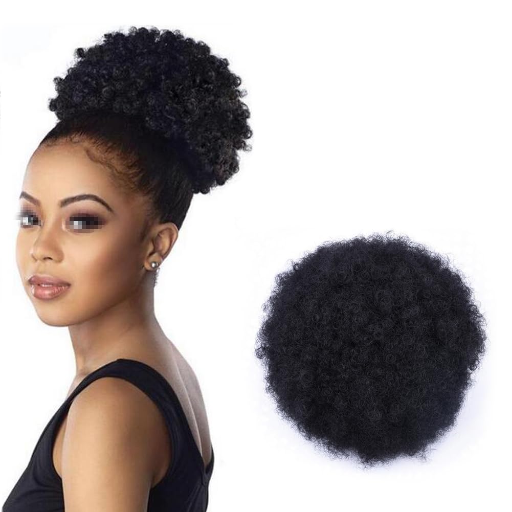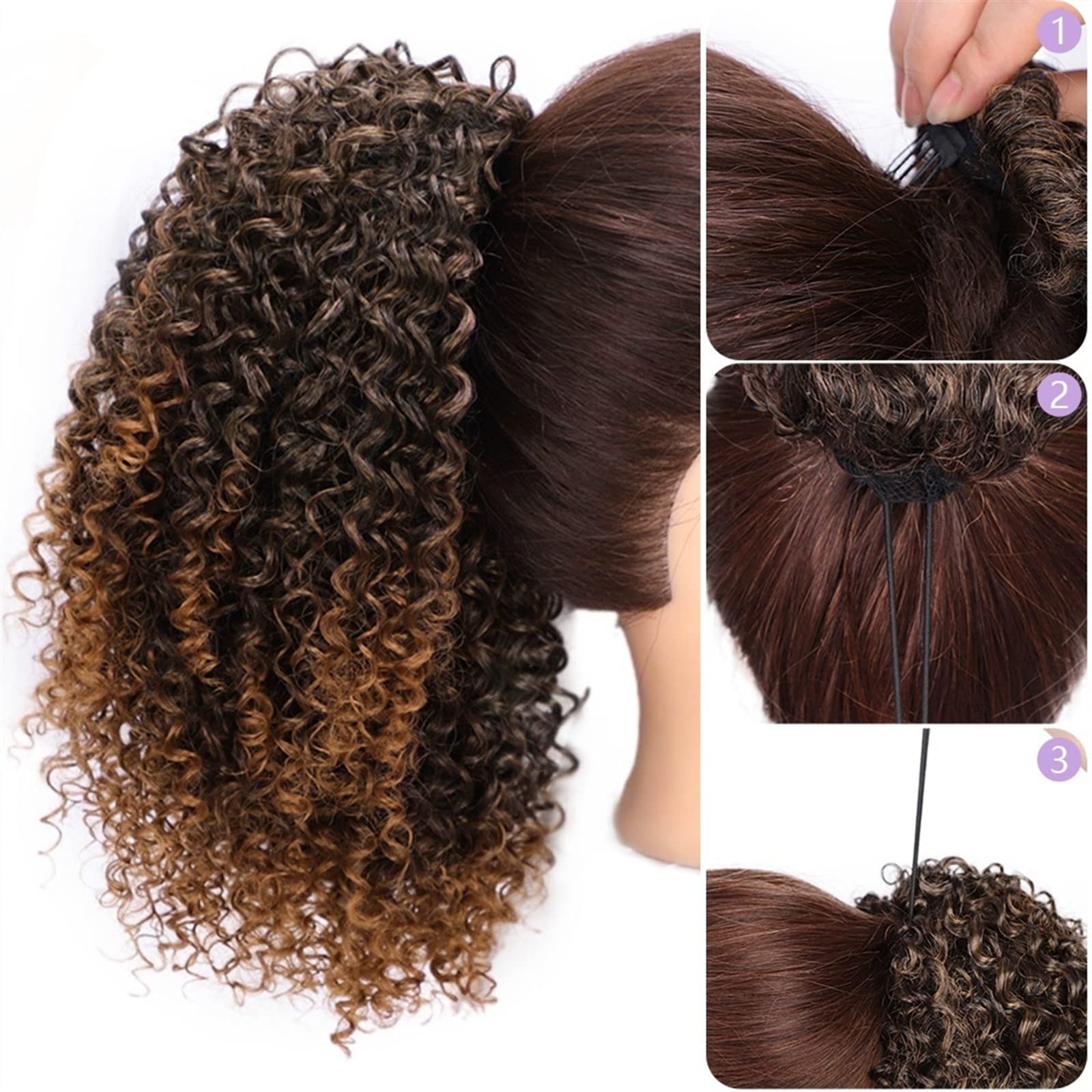 HIHELO Haarknoten Afro Shaggy Hair Bun Pferdeschwanz-Verlängerungen Mit Pony-Pferdeschwanz-synthetischen Kurzen Lockigen Irokesen-Haarspangen-Perücken For Frauen Haarknoten Haarteil (Color : 0012