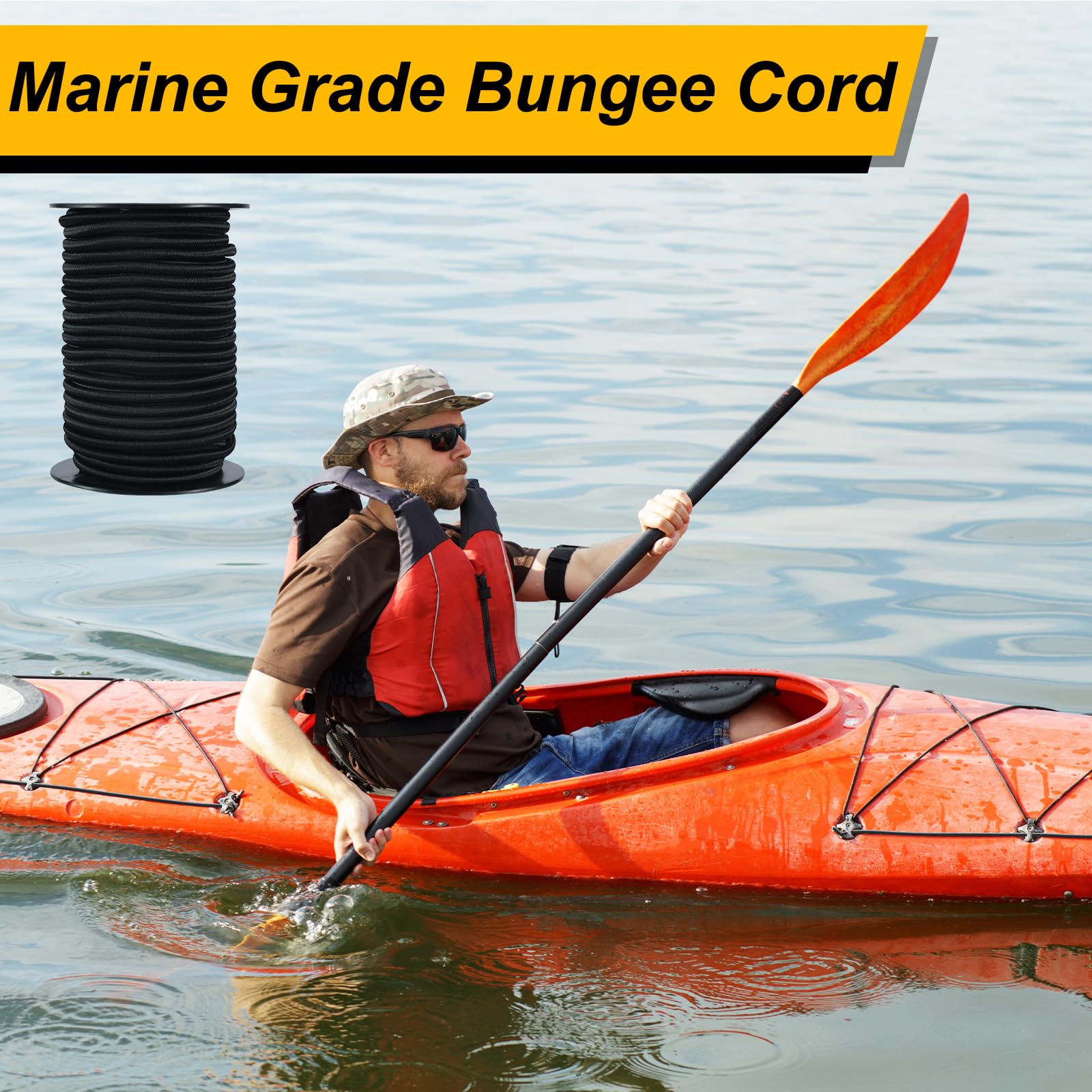Wesnoy 100ft Bungee Cord, Black Elastic Cord, Marine Grade Shock