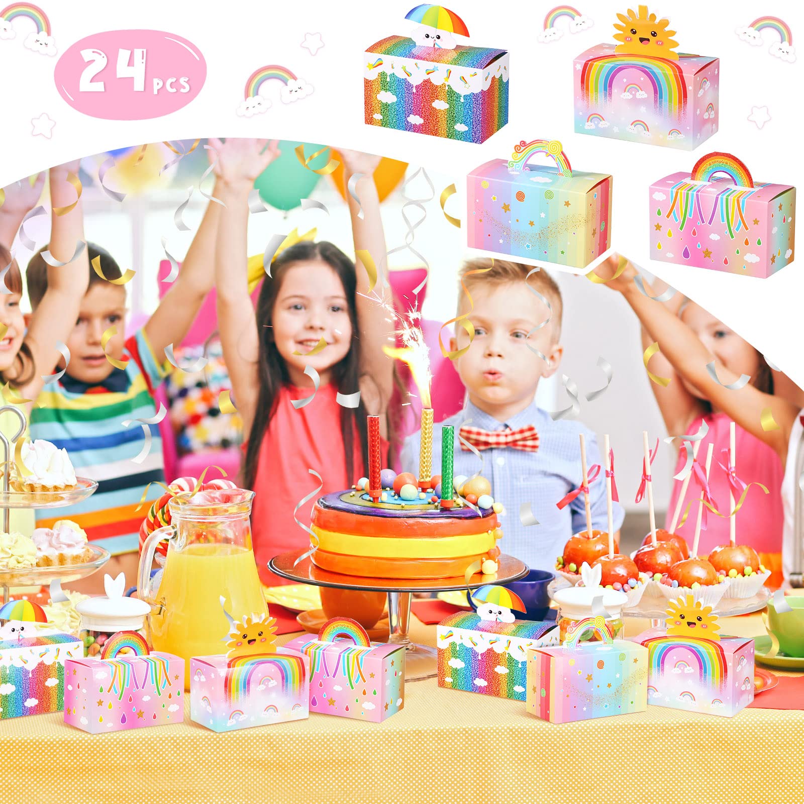 24 Stück Regenbogen-Giebel-Boxen Für Partygeschenke, Bunte Geburtstags-Goodie Boxen, Leckereien, Kleine Geschenke (6 Farben, 15,2 X 8,9 X 9,1 Cm