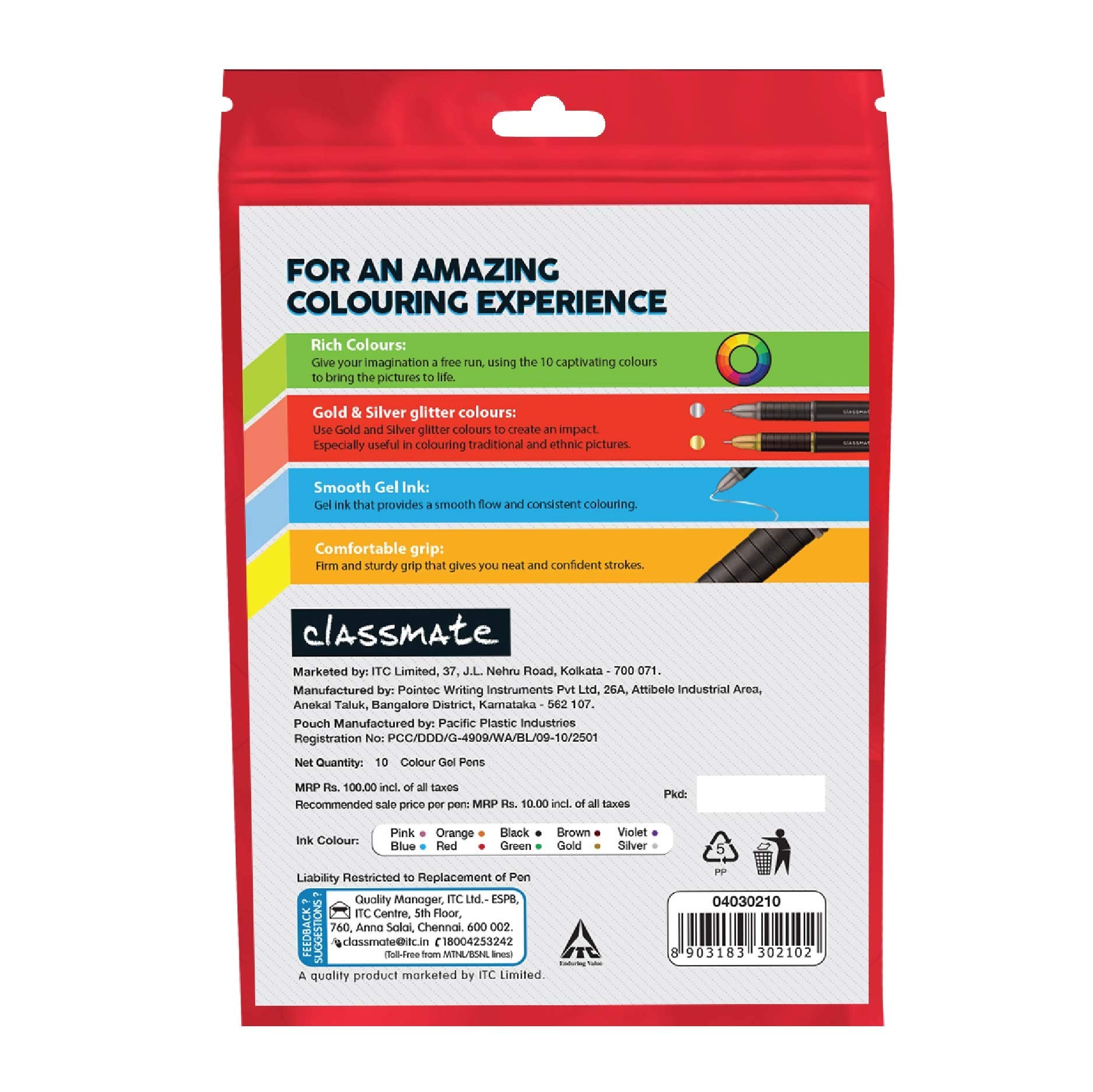 Classmate Octane Colour Burst Multicolor Gel Pens (Pack Of 10