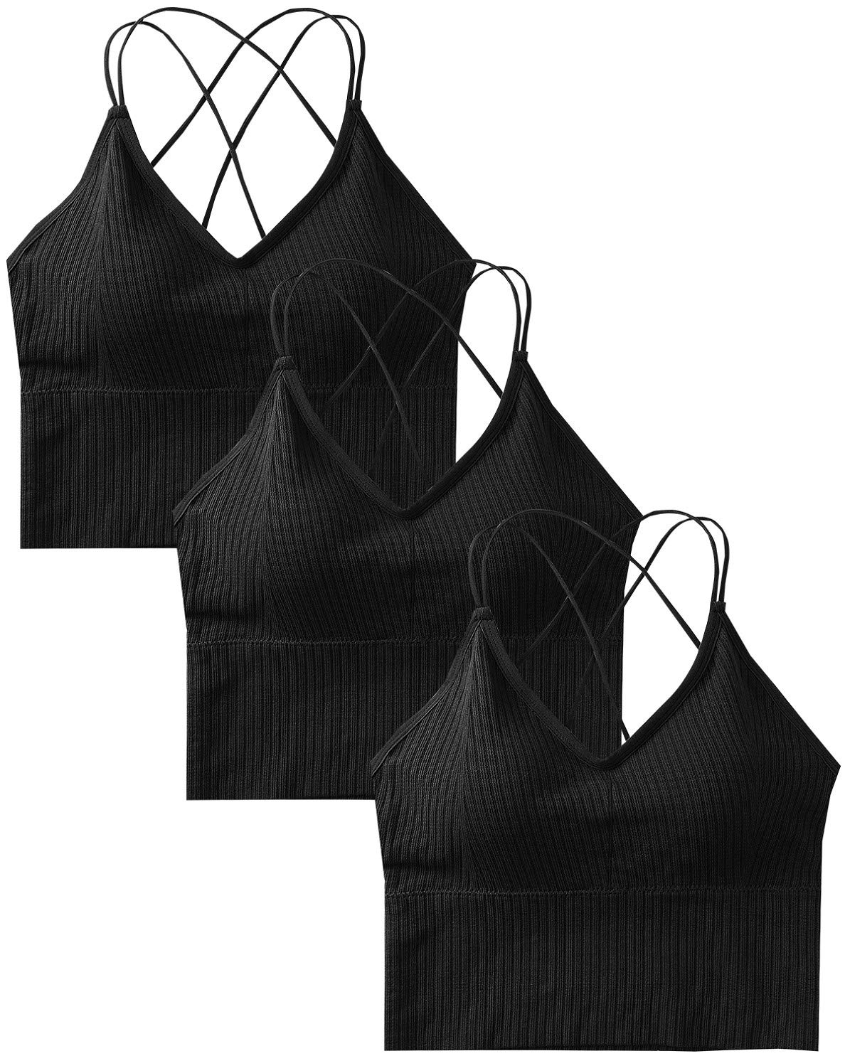 Sykooria Sport BH Damen Gepolstert Bustier Ohne Bügel Spaghettiträger Cross Back Design Push Up Sport Bra Top Für Yoga Fitness, Schwarz S