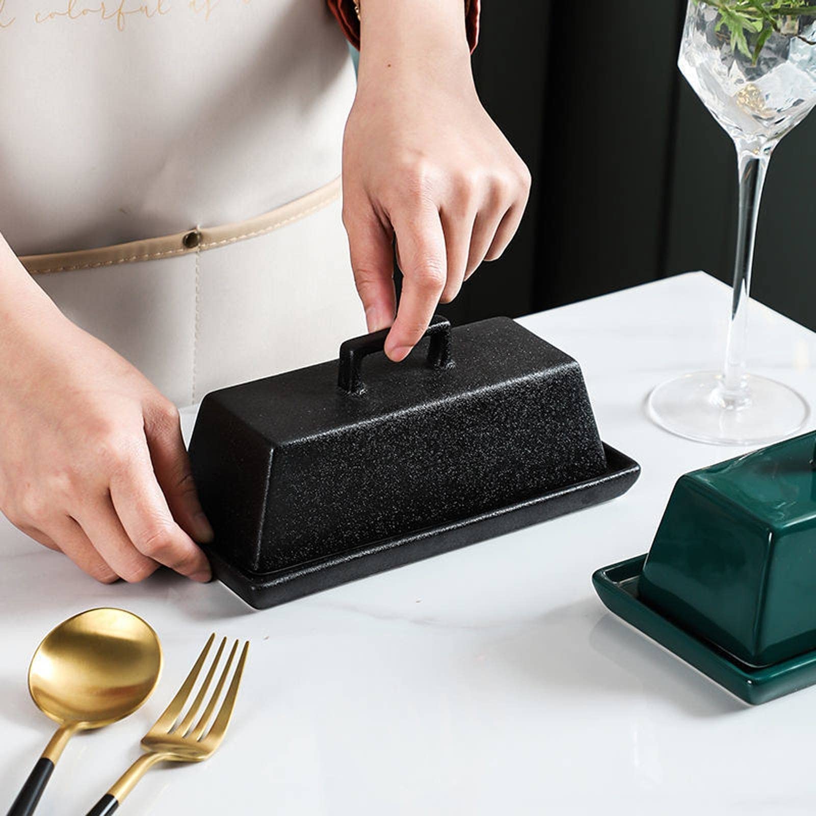 Butterdose Aus Keramik, Butterdose Mit Deckel, Rechteckige Silikondichtungen, Butterbehälter, Luftdicht Und Frisch, Küchenarbeitsplatte, Butterbehälter, Stilvoll Und Für Die Küche