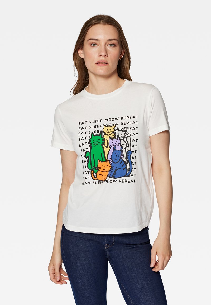 Mavi KURZARM CAT PRINTED TEE - T-Shirt Print - Antique White/weiß