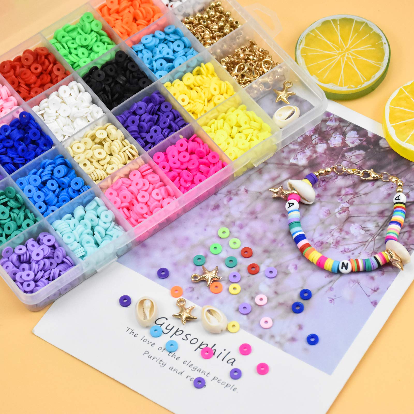 CGBOOM 5546 Stück Polymer Clay Perlen, 24 Farben Beads 6 Mm Heishi Perlen Ketten Armbänder Selber Machen Set, Flache Perlen Für Erwachsene Kinder