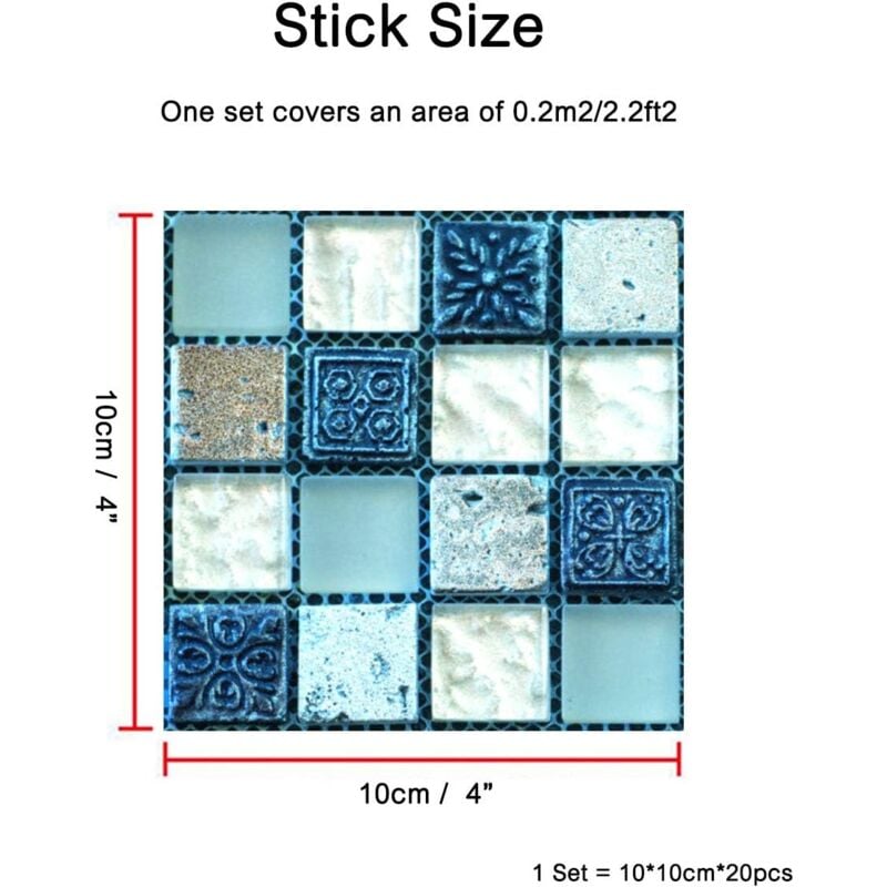 CHGCRAFT 36 Stück Blau Relief Fliesenaufkleber 10x10cm
