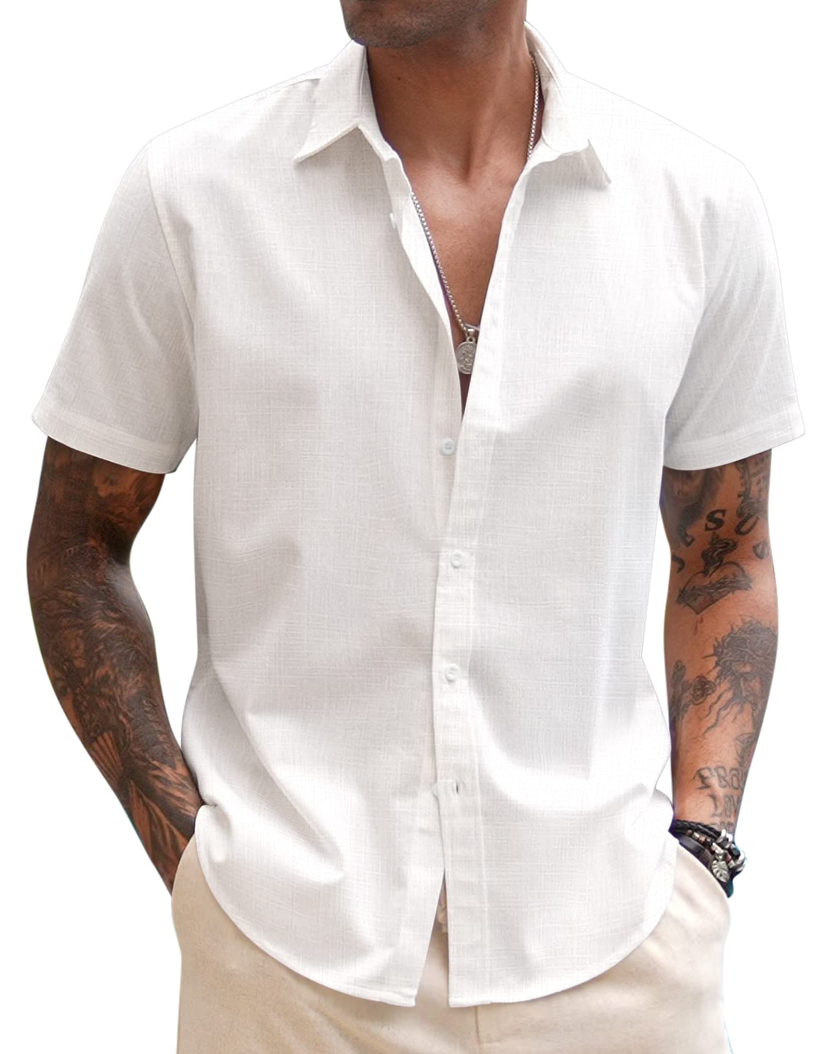 COOFANDY Hemd Herren Kurzarm Leinenhemd Sommerhemd Herrenhemd Kurzarmhemd Baumwolle Hemd Freizeithemd Mit Brusttasche Urlaubshemd Casual Dunkelgrau L