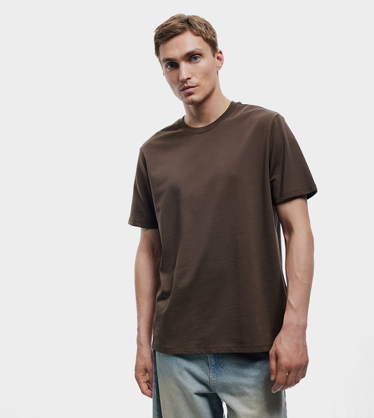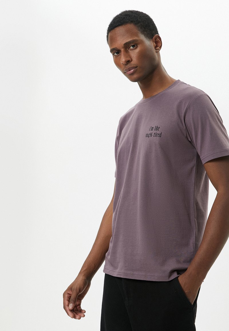 Koton DETAIL CREW NECK TEXTURED - T-Shirt Basic - Brown/braun