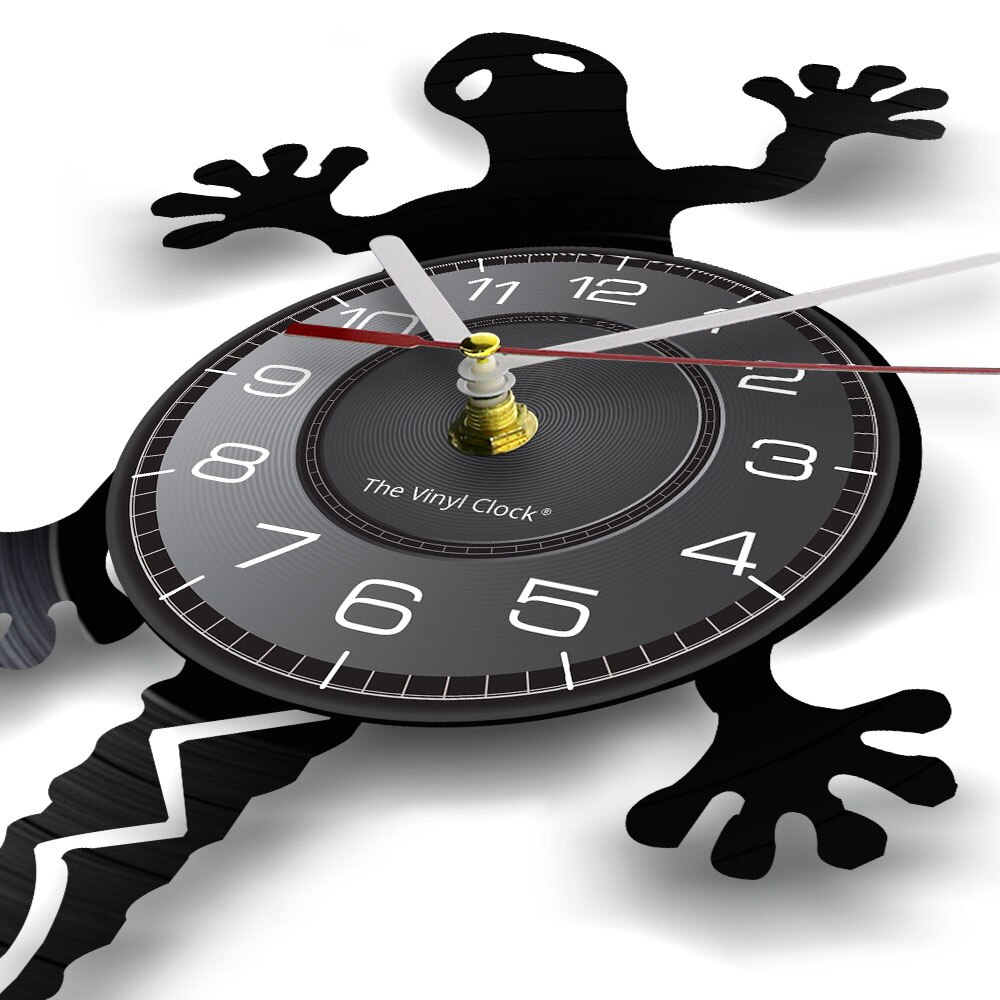 CalleaDesign Gecko Wanduhr Schwarz Wallaro Wanduhr Gecko Schatten auf grünem Blatt - Umrss (Uhr aus Acryl Beyond Time - Die trendigsten Uhren für Ihr Interieur Zeiger: Stunden- und Minutenzeiger aus Metall , Personalisierbar MuchoWow Wanduhr Lachender grüner Gecko (Uhrwerk, Wohnzmmer, Küchenuhr...