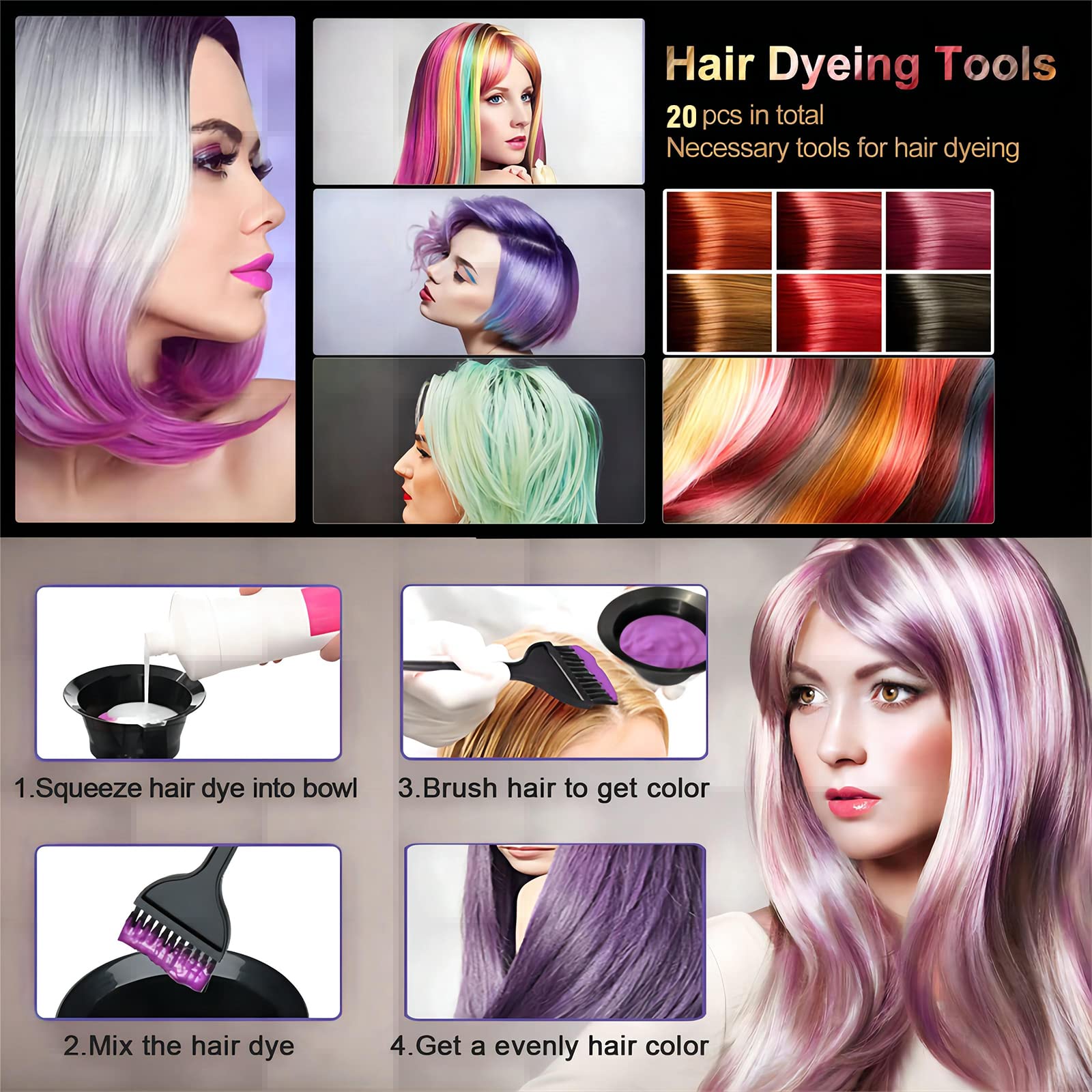 Glarks 25Pcs 3 Set Professional Hair Coloring Kit, Hair Highlight Cap With Metal Hook, Disposable Hair Dye Shawl, Gloves, Dye Brush, Mixing Bowl, Angled Comb And Brush, Hair Clip Set For Hair