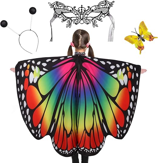 Vielseitig einsetzbar: Das Schmetterlingskostüm Kinder eignet sich für verschiedene Anlässe, wie Halloween-Partys, Rollenspiele, Schulaufführungen, Alltagskleidung, Geburtstage, Maskenbälle, Paraden, Karneval, Motto-Partys und andere Veranstaltungen, sodass Kinder in ihrem einzigartigen und charmanten Schmetterlingskostüm Kinder hell erstrahlen können! 【Weiches Material】 Die Schmetterlingsflügel Kids bestehen aus hochwertiger, leichter und seidig-glatter Polyesterfaser, die besonders sanft zu empfindlicher Haut von Kindern ist und für Komfort beim Tragen sorgt. Hergestellt aus ultraweichem Stoff, kann es den ganzen Tag bequem getragen werden, auch von den Kleinen. Sie imitieren die Farbpalette echter Schmetterlinge und integrieren gleichzeitig Elemente einer magischen Naturwelt. Schmetterlingsflügel Kinder können frei gestylt werden, schwingen sanft im Wind beim Laufen, genau wie ein echter Schmetterling, der anmutig tanzt. 【Lebendige Farben】Feen-Schmetterlingsflügel sind bekannt für ihre lebendigen, fröhlichen Farben. Produktbeschreibungen Lassen Sie die Kindheit Flügel wachsen! Schmetterlingsflügel Kinder mit Glitzer | Volksfestartikel, 3,49 Faschingskostüme Kinder Capaneus Schmetterling Kostüm Kinder, Schmetterlingsflügel Mit Lila Tutu Rock, Haarreif, Maske E Tattoos Schmetterling, Schmetterling Umhang Kostüm Für Mädchen Karneval Fasching Halloween Cosplay Mottenflügel Kostüm Schmetterlings-inspiriertes Design: Die Schmetterlingsflügel-Kinder-Kollektion verfügt über Designs, Muster und Farben, die von Schmetterlingen inspiriert sind. Schmetterlingsflügel Kinder Accessoire , günstige Faschings Accessoires & Zubehör bei Karneval Megastore, der größte Karneval und Faschings Kostüm- und Partyartikel Online Shop Europas! Sunshine smile Schmetterlingsflügel, Feenflügel Damen, Flügel Fee Tacobear 5 Stück Kostü Schetterling Kinder ädchen...