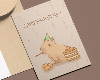 Capybara Geburtstag skarte | Capybara Karte Capy Tier Kindergeburtstag Lustig Humor Geburtstagsgruß Capybara Geschenk Happy Birthday Capybara with Balloons and Party Hat Stock Image - Image... Kartengröße (gefaltet): 18 cm x 13 cm. und es kommt mit einem Umschlag. BPKDesigns Hübsche Capy-Geburtstagskarte - Capybara Bday Grußkarte - Capybara Wortspielkarte - Happy Birthday Capy Karte - lustige Karte für beste Freundin günstig auf - Große Auswahl von Top-Marken Grußkarte for Sale mit Niedlicher Capybara und Kuchen, alles Gute zum Cappy-Geburtstag von rustydoodle Leere Innenseite für Sie, um eine lustige Nachricht für einen besonderen Menschen hinzuzufügen, der älter wird. Kreative Designs: Unsere Karten verfügen über einzigartige und kreative Designs, die eine beeindruckende und emotionale Wirkung auf den Empfänger gewährleisten.