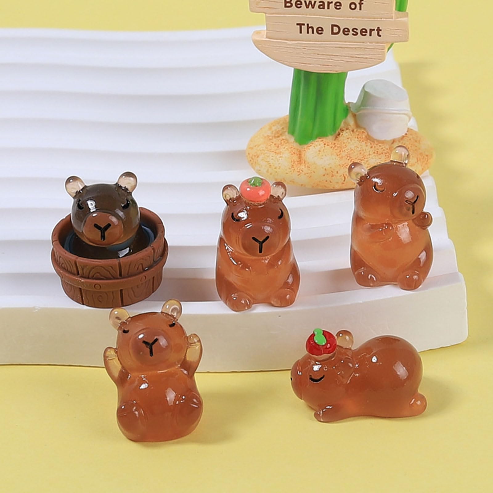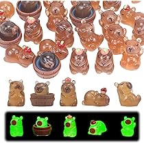 Camptrip Pack Of 40 Capybara Luminous Figurines, 5 Styles, Mini Resin