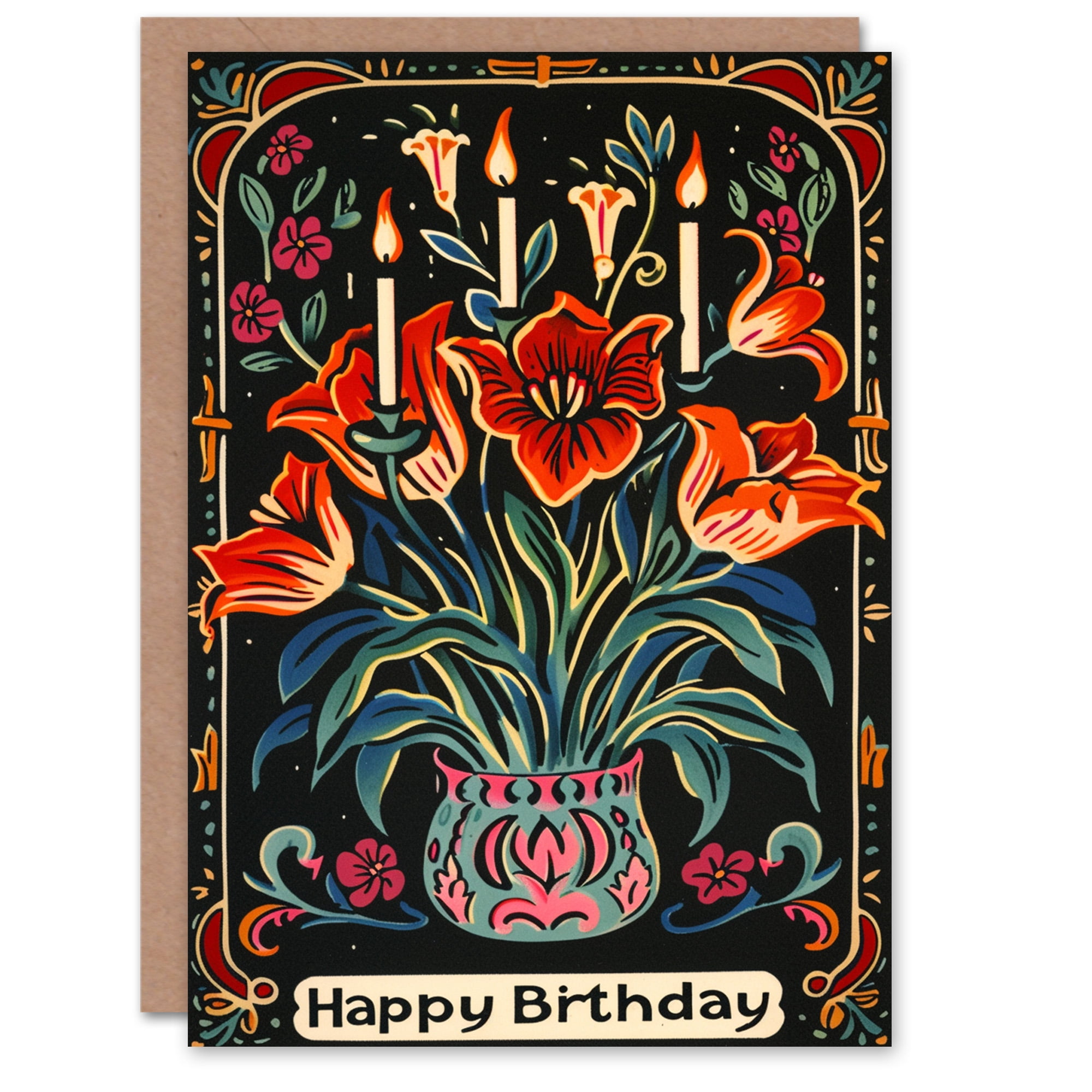 Artery8 Birthday Card Floral Medieval Manuscript Style Design For Her