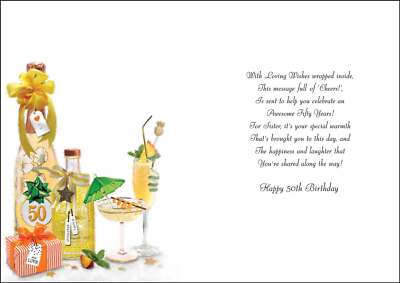 Jonny Javelin Sister 50th Birthday Card - Gin Cocktail Glitter & Foil 9x6.25