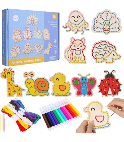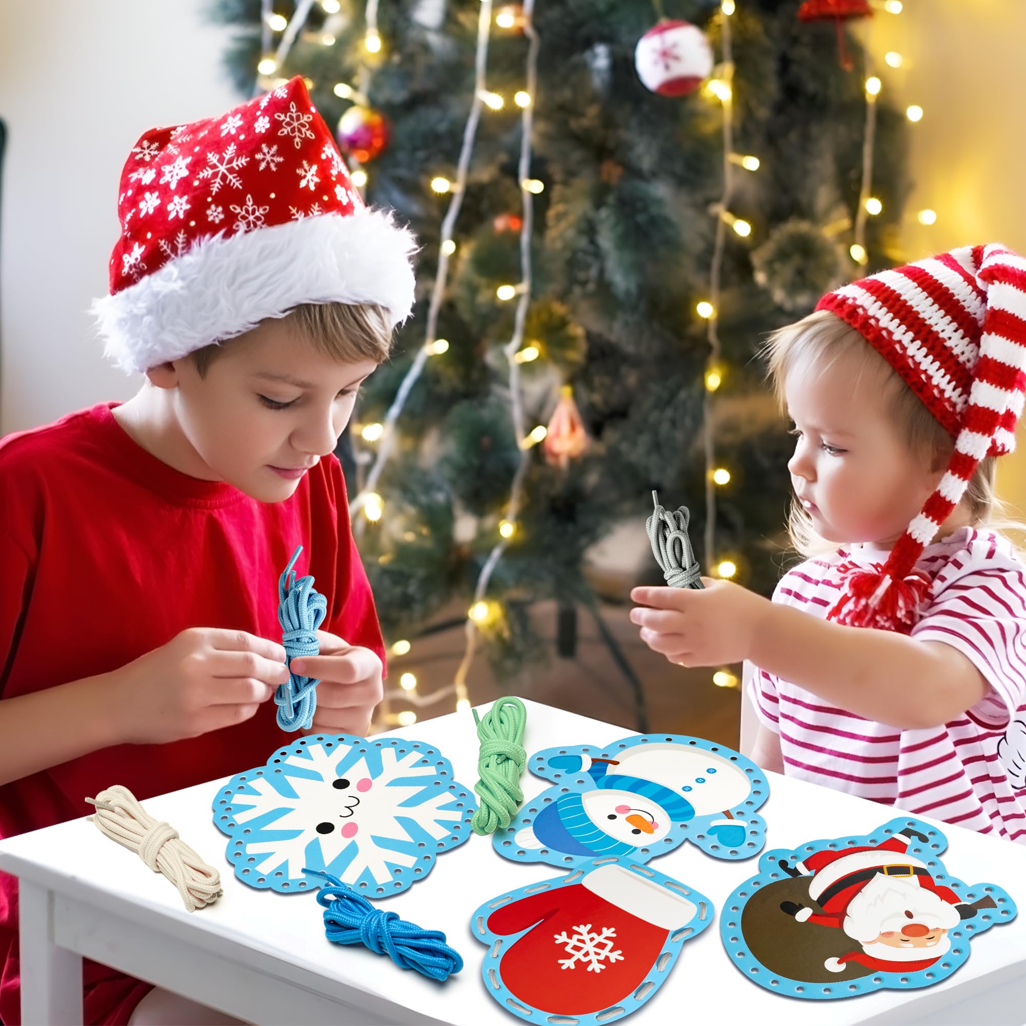 WATINC 18 Stück Winter Lacing Cards Weihnachtsdekorationen Anfänger Vorschule Lacing Card Kit Für Kinder Doppelseitige Nähkarten In 9 Weihnachten Muster Mit 9 Bunten Spitzen Spielzeug Spiele