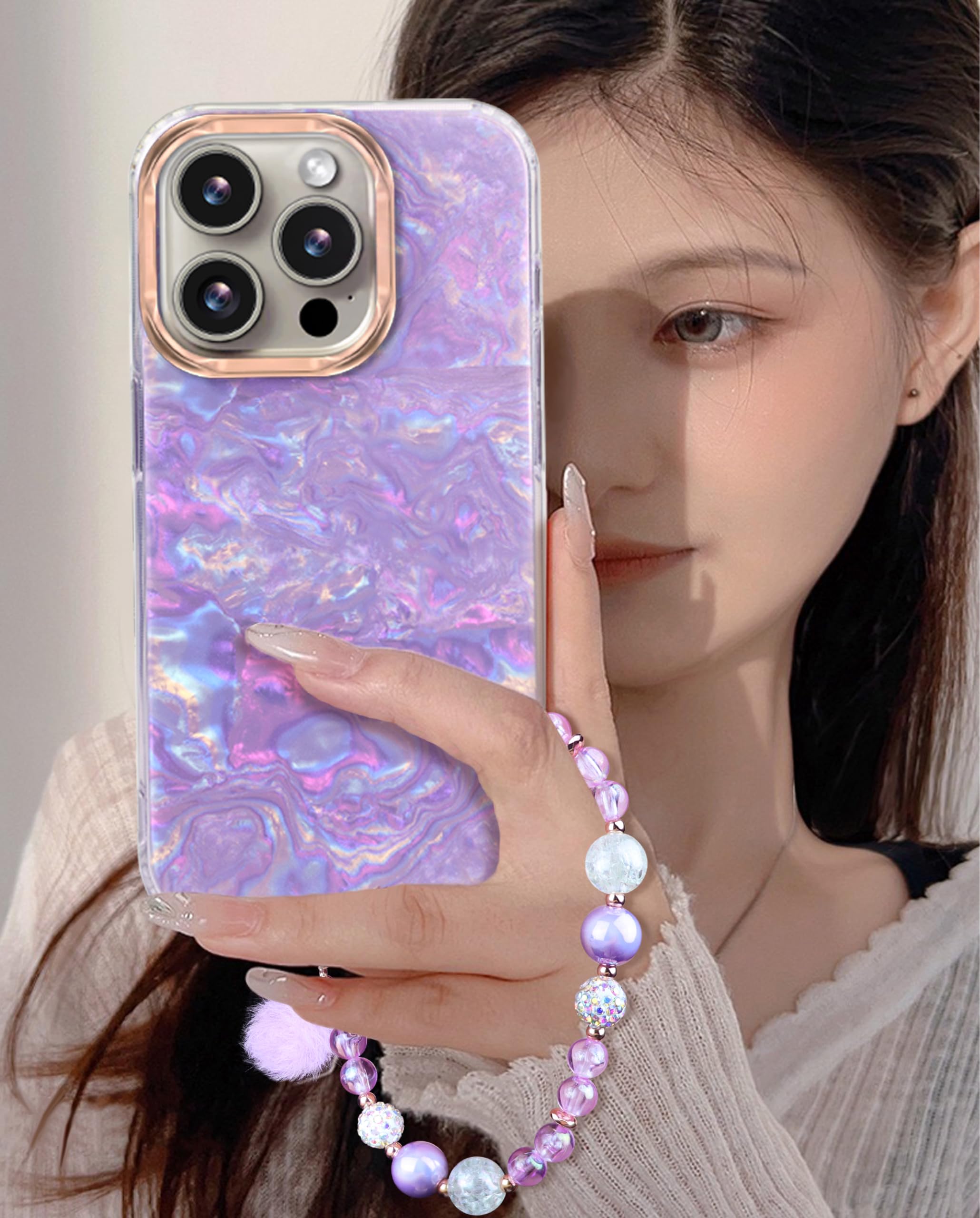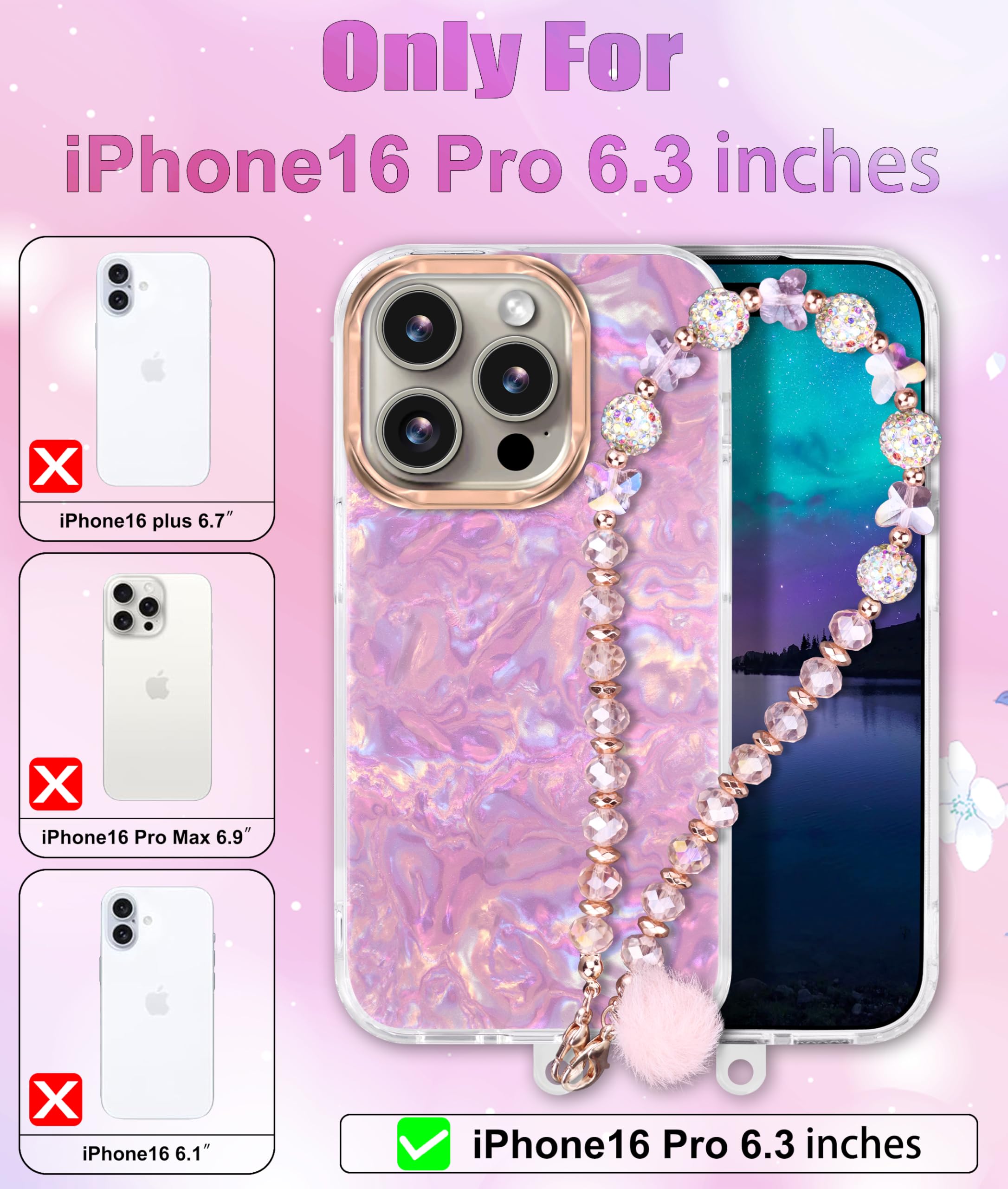 Casililor Kompatibel Mit IPhone 16 Pro Max Hülle 6,7" 2024 Schutzhülle Slim Glitzernde Handyhülle 16 Pro Max Case Mit Handykette Handyanhänger Für Frauen Und Mädchen Schmetterling Glitter Lila