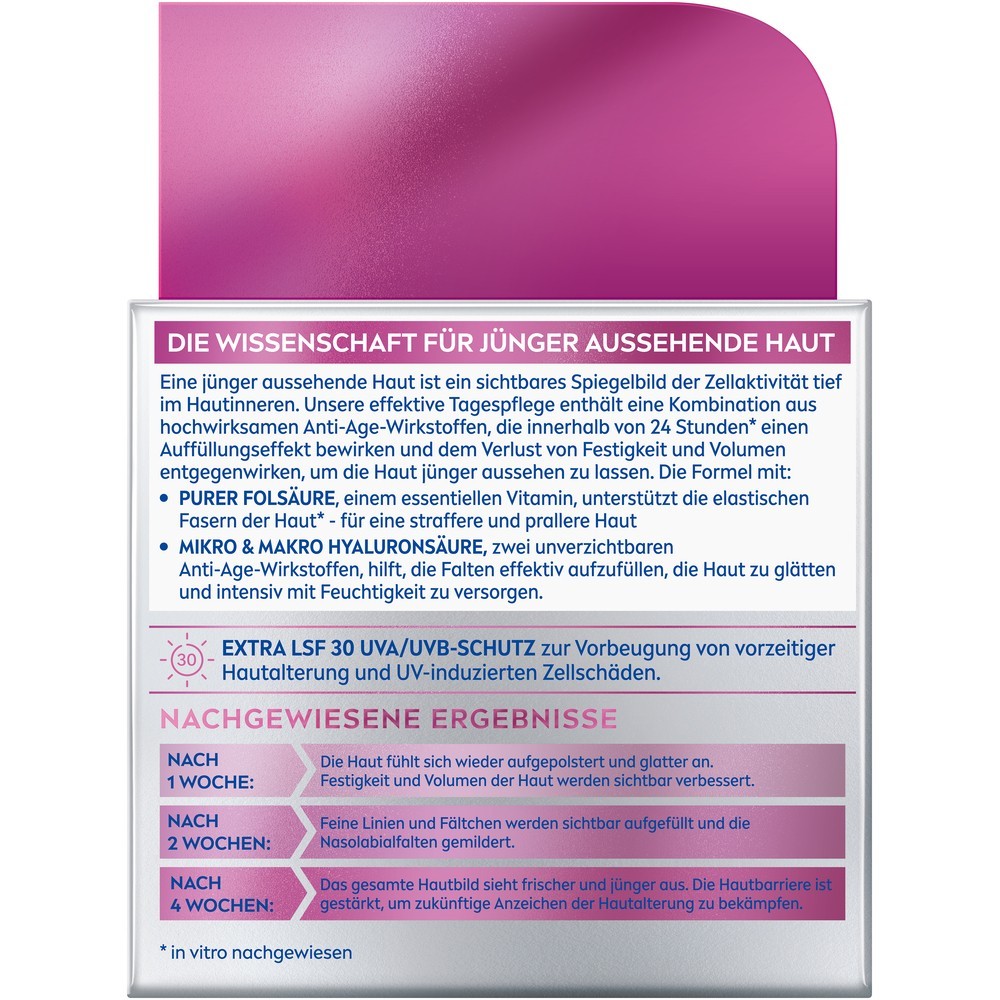 Lieferumfang & Details – NIVEA Cellular Expert Filler Hochwirksame Anti-Age Nachtpflege (50 ml), extra straffende und aufpolsternde Gesichtscreme gegen Falten, Artikelnr., 82386 Mit purer Folsäure und 2 Arten von Hyaluronsäure wirkt sie extra straffend und aufpolsternd. *In vitro Gebrauchsanweisung k., A. Die Expert Nachtpflege ist die innovative Nachtpflege mit 3x Effekt: Sie polstert die Haut auf, füllt Falten auf und spendet Feuchtigkeit. Die Formel enthält eine Kombination aus hochwirksamen Anti-Age-Wirkstoffen, die innerhalb von 24 Stunden* einen Auffüllungseffekt bewirken Produktbeschreibung NIVEA Cellular Expert Filler Hochwirksame Anti-Age Nachtpflege – die Wissenschaft für jünger aussehende Haut Die Cellular Expert Filler Hochwirksame Anti-Age Nachtpflege bewirkt innerhalb von 24h* einen Auffüllungseffekt und wirkt dem Verlust von Festigkeit und Volumen entgegen. Pflege über Nacht – Für ein frisches und erholtes Aussehen am Morgen unterstützt die Anti Falten Creme den natürlichen Erneuerungsprozess der Haut während der Nacht. Vom Hals ausgehend in kreisenden Bewegungen einmassieren., Direkten Augenkontakt vermeiden. Bleiben Sie per E-Mail über die letzten Marktkauf Aktionen, prospekte und angebote informiert. Einfache Anwendung: Täglich abends auf das gereinigte Gesicht auftragen. La Roche-posay Cellular Expert Filler Anti Age Nachtpflege Nivea Serum Die Anti Aging Creme überzeugt dabei mit einer innovativen Formel, die eine Kombination aus hochwirksamen Anti-Age Wirkstoffen enthält. NIVEA Anti Age Nachtcreme Cellular Expert Lift, 50 ml Die Folsäure unterstützt als essenzielles Vitamin die elastischen Fasern der Haut* und sorgt somit für eine straffere und prallere Haut. Anschrift Hersteller/Importeur Unnastrasse 48 20245 Hamburg Mit purer Folsäure & 2 Arten von Hyaluron Mikro- und Makro-Hyaluronsäure sind zwei unverzichtbare Anti-Age Wirkstoffe, die dabei helfen, Falten aufzufüllen, die Haut zu glätten und sie intensiv mit Feuchtigkeit zu versorgen. Wachen Sie mit schöner Haut auf! Finden Sie passende Nachtcreme, die Ihre Haut verjüngt und mit Feuchtigkeit versorgt, während Sie schlafen