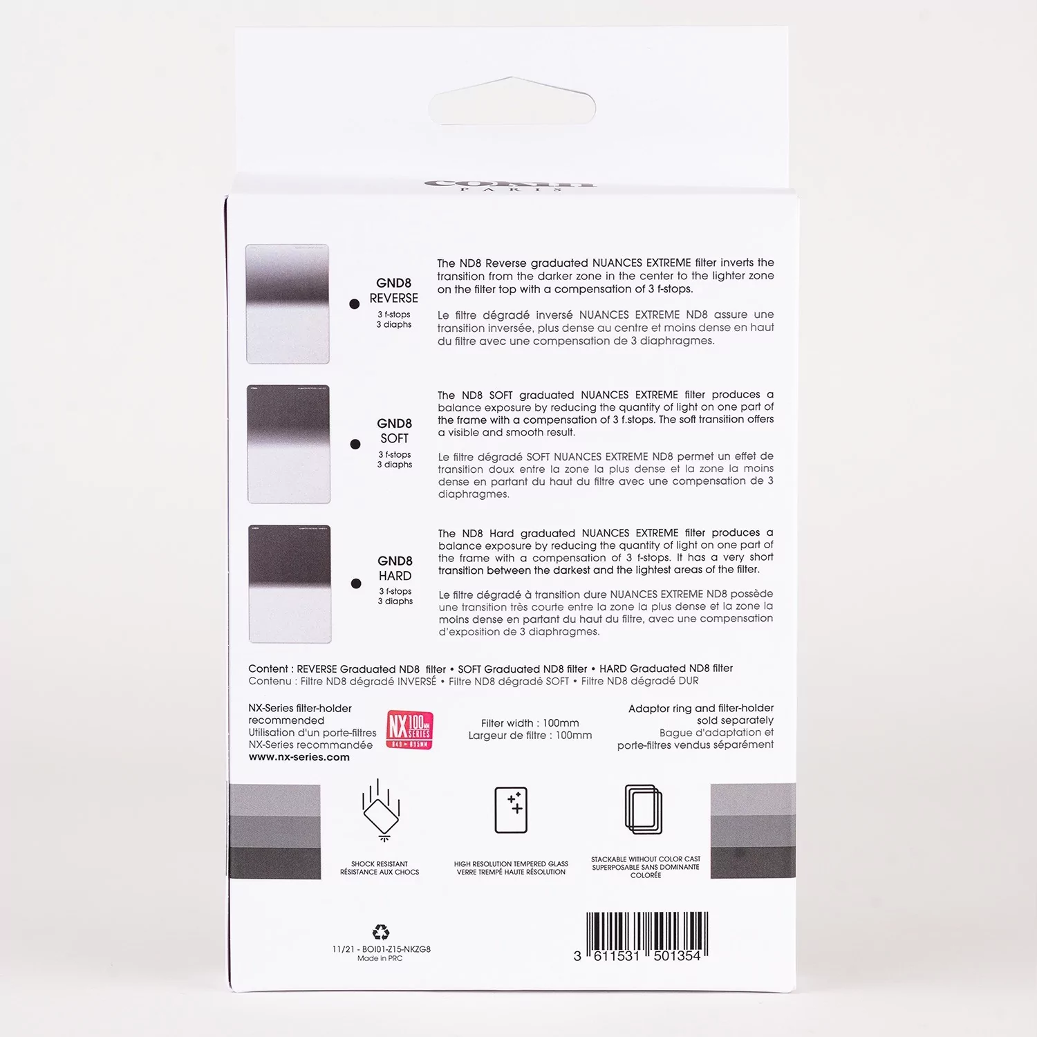 Cokin NUANCES Extreme Center GND ND8 Soft 3 F-Stops P-Serie STAPELBAR OHNE FARBIG DOMINANT Exklusive Herstellungsverfahren ermöglichen es, mehrere Filter übereinander zu legen, ohne das Auftreten eines ausgeprägten Farbstichs befürchten zu müssen. Produktbeschreibung NUANCES Extreme Filter bestehen aus hochbeständigem gehärtetem Glas, das einem versehentlichen Fall standhalten kann. Der zentrierte Verlaufsfilter ND8 ermöglicht eine Kompensation von 3 Blenden auf einen schmaleren, schlanken Bildbereich. Grauverlauffilter (Graduated Neutral Density – GND) sind ein unverzichtbares Werkzeug für Landschaftsfotografen. HOCHAUFLÖSENDES GLAS NUANCES Extreme Filter bestehen aus Glas mit außergewöhnlichen optischen Eigenschaften, um alles mit 2 mm Dicke und abgerundeten Kanten zu zeichnen, was das Einsetzen erleichtert COKIN empfiehlt die Verwendung eines EVO-Filterhalters mit der NUANCES Extreme-Reihe. Set enthält: Cokin P Series Nuances Extreme Center Graduated ND8S 3-Stop-Filter, Filtertasche