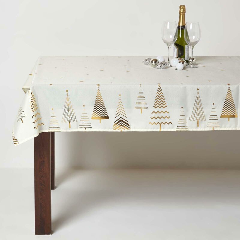 Tischdecke Champagner 130x260 Cm Eckig Damast Ornamente Bügelfrei
