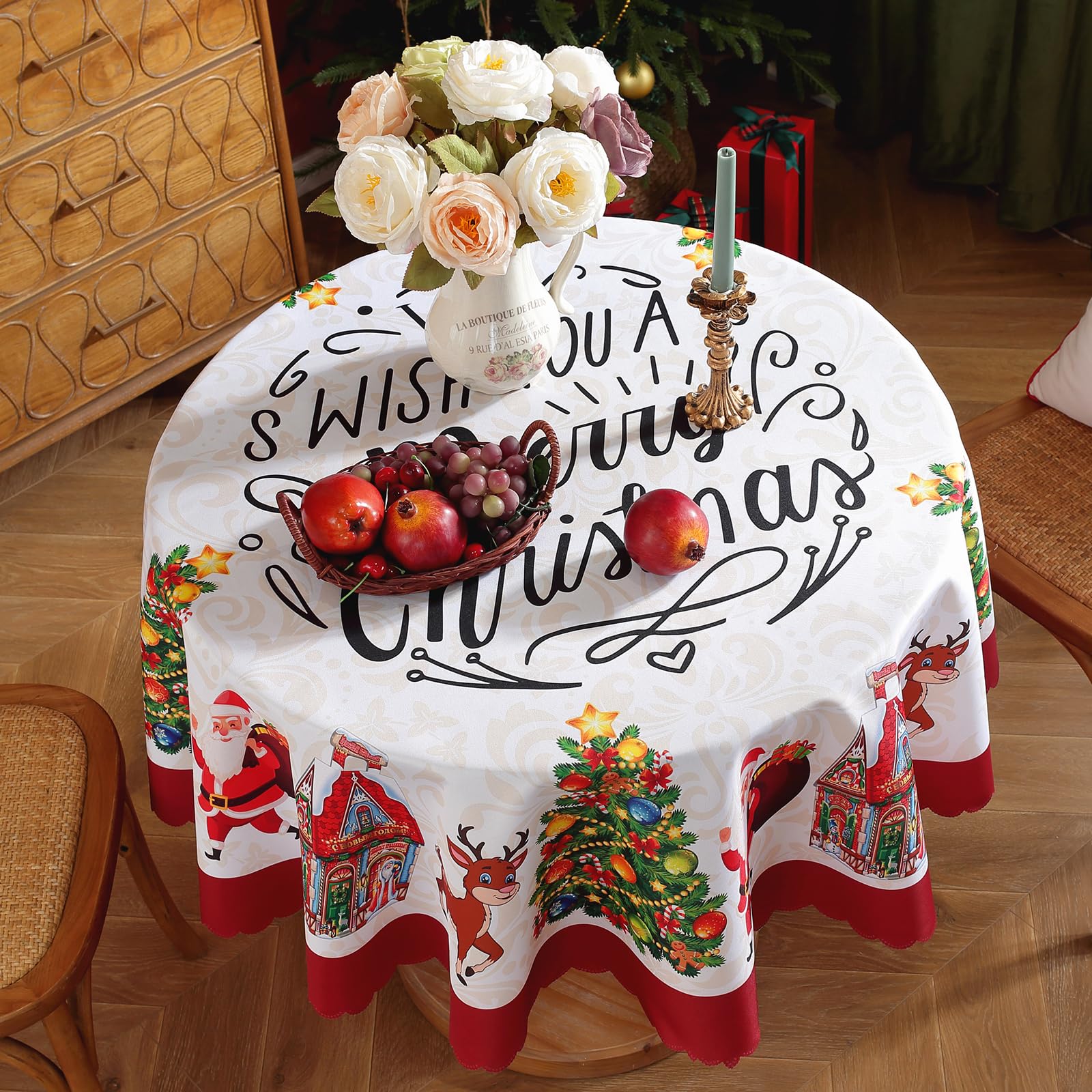 Chickwin Weihnachten Runde Tischdecke, Wasserdichte Abwischbare Tischtuch Mit Gummiband, Kreativ Nordischdruck, Stehtisch Hussen Für Drinnen Und