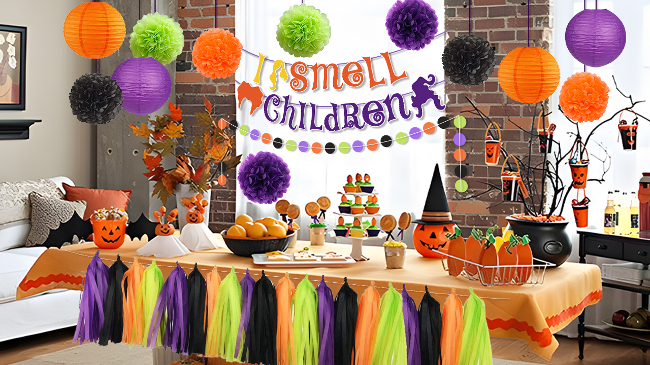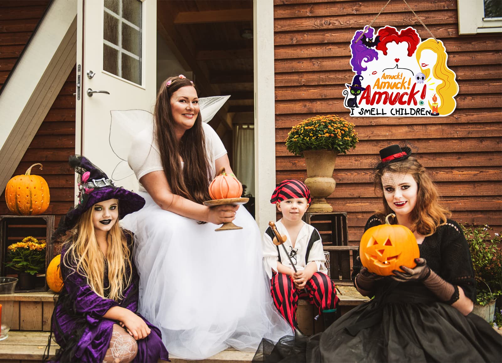 Happy Storm Halloween Decorations Hocus Pocus Banner I Smell Children Halloween Porch Sign Door Hanging Sign With Witch Sisters Black Cat Decor For Home Indoor Outdoor Wall Party Supplies