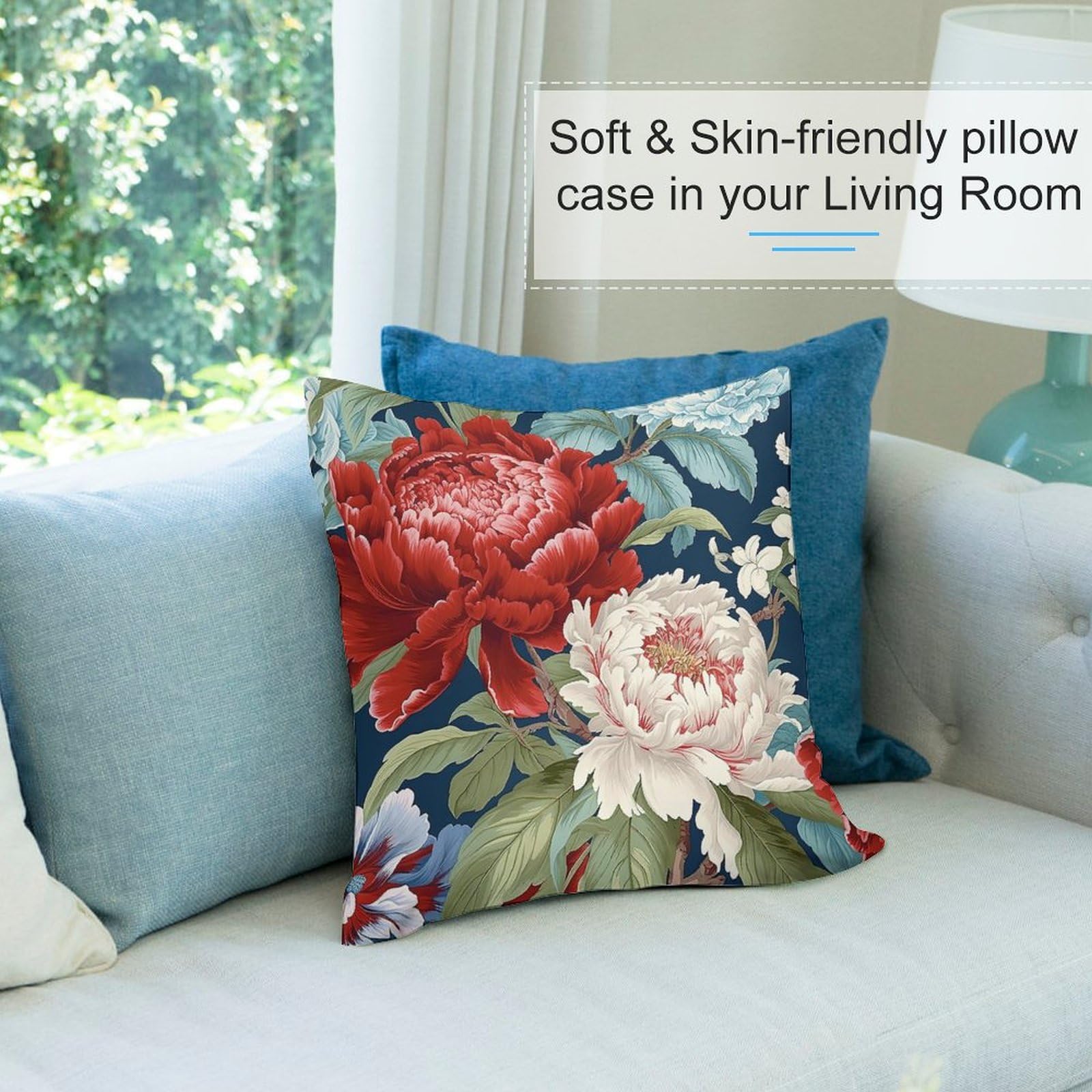 Zyadsinoudor Kissenbezug Chinoiserie Rote Pfingstrosen Floral