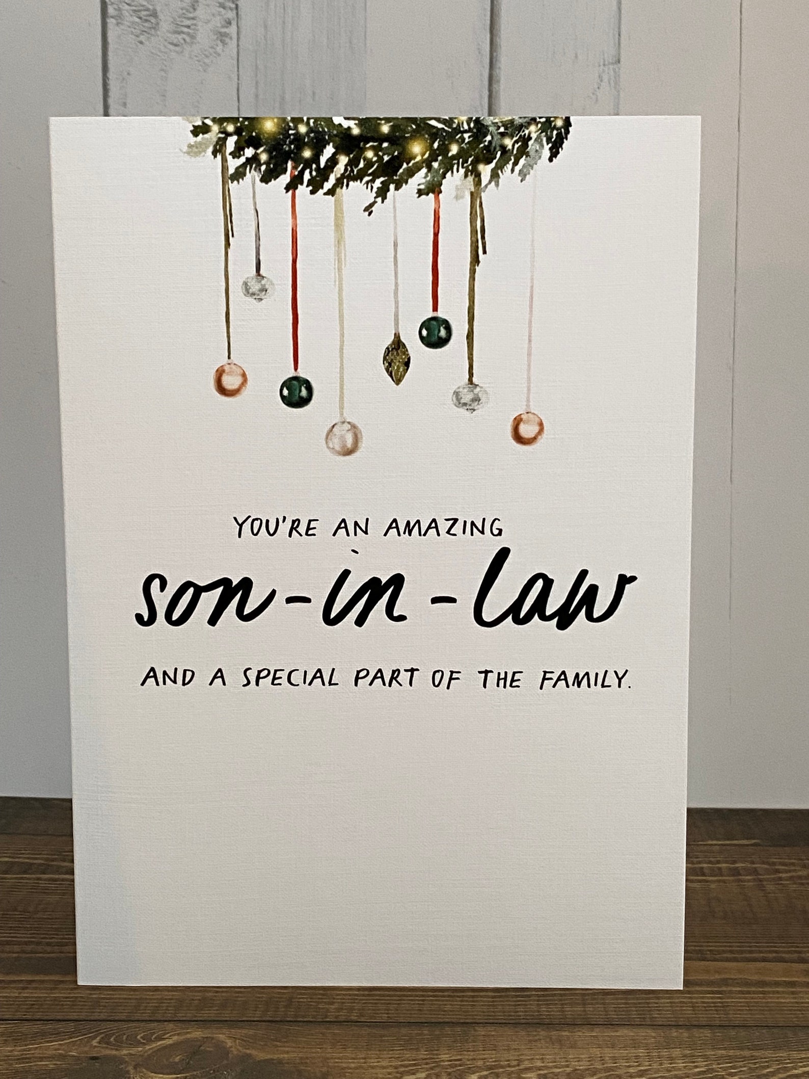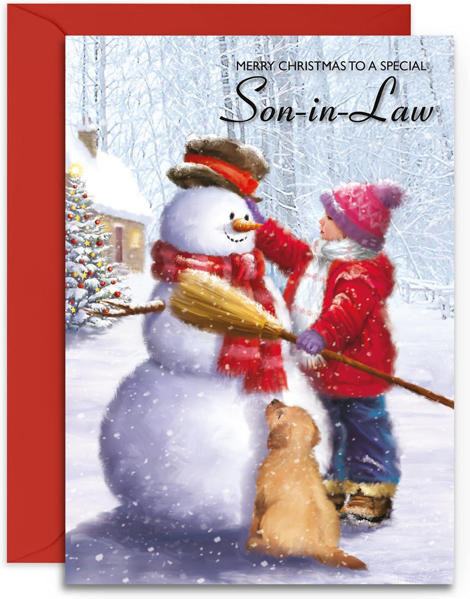 Dieses Design ist Teil einer großen Auswahl an Weihnachtskarten und anderen sozialen Schreibwaren von Olivia Samuel. Diese Weihnachtskarte ist aus dickem 300 g/m² hochwertigem Karton aus nachhaltigen Quellen hergestellt und hat eine Hochglanz-Oberfläche. Eine hochwertige A5-Weihnachtskarte (148 x 210 mm) mit einer herrlichen Waldszene. Lieferung mit einem hochwertigen 120 g/m² weißen C5-Briefumschlag. Wonderful Daughter & Son-In-Law Die-Cut Christmas Card - Love Kate's AK Giftshop Son-in-Law Christmas Card Festive Santa Hat Greeting Card