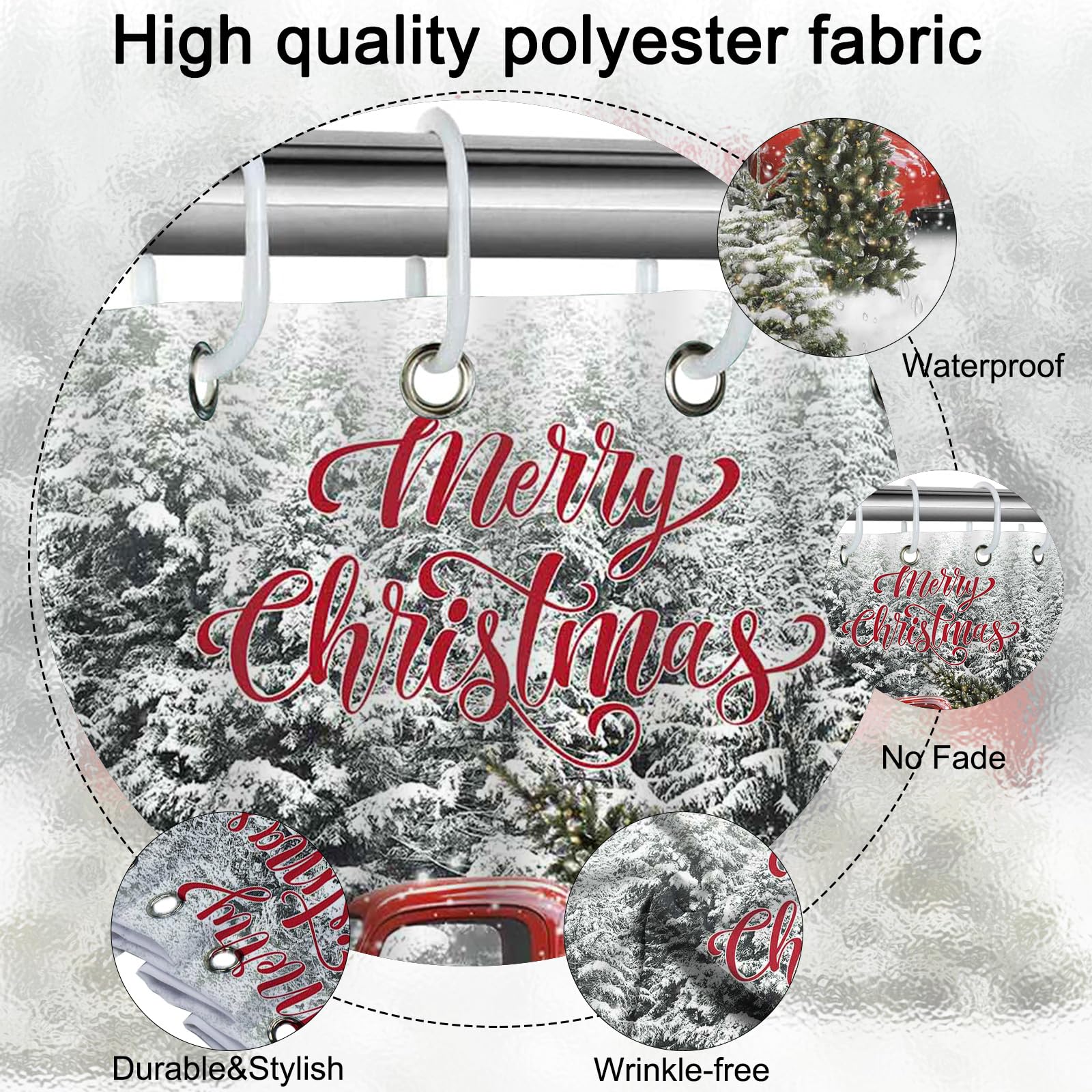 Merry Christmas Duschvorhang, Rustikaler Roter LKW, Winterszene