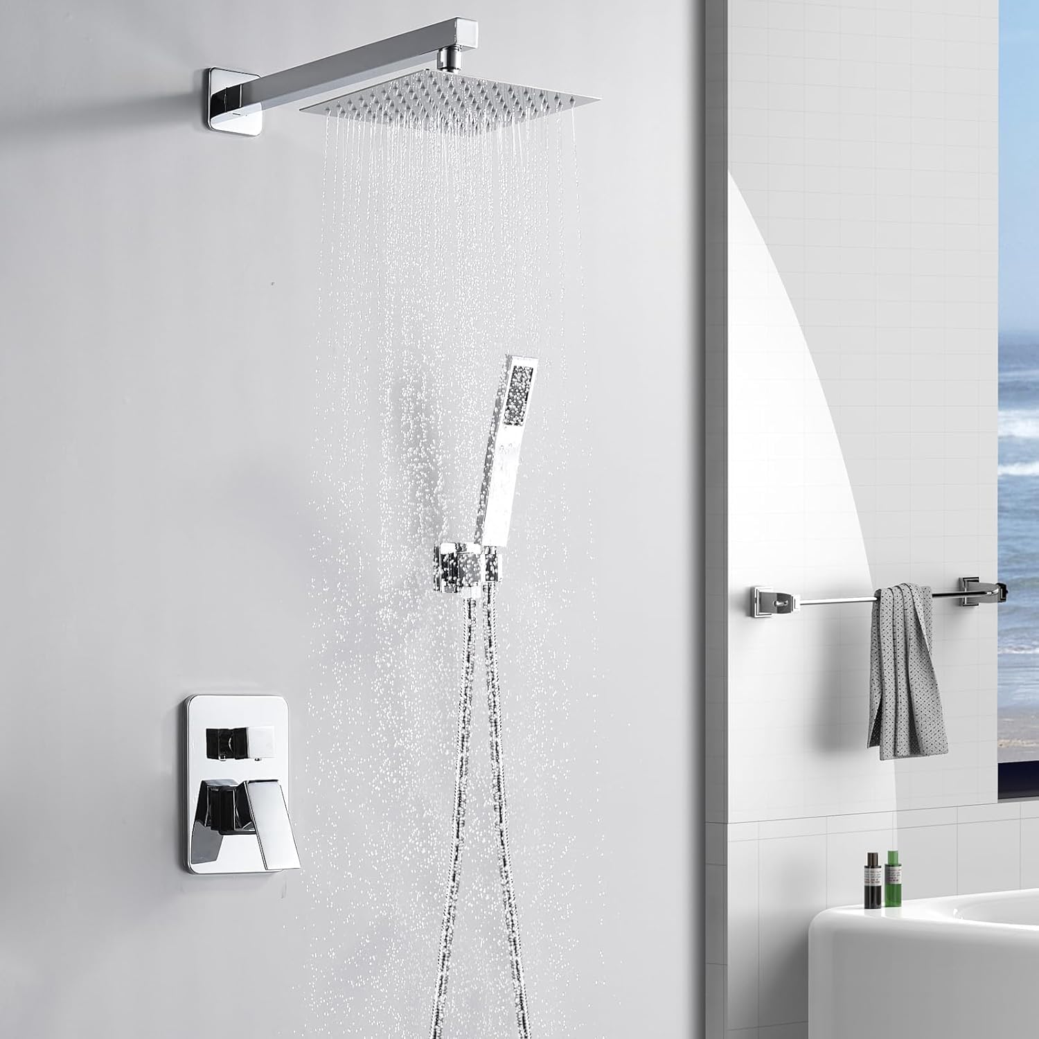 Wassereffizienz und verbesserter Druck] Der 10-Zoll-Regenduschkopf mit Handbrause verfügt über eine innovative Luftstrahltechnologie, die Wasser mit Luft mischt, um den Wasserdruck um bis zu 100% zu erhöhen und ein realistisches Regenduscherlebnis für verbesserten Badekomfort zu bieten Das einfache und stimmungsvolle Erscheinungsbild eignet sich für eine Vielzahl von Badezimmern. Water Saving and High Pressure, Rain Shower Experience The 10 inch shower faucet set uses innovative air jet technology to mix water with air, increasing the water pressure by 100% and simulating natural rain to give you a pleasant shower experience. Lieferumfang: 1 x Installationsanleitung 1 x Runder Duschkopf (20 cm Durchmesser) 1 x Runde Handbrause (12 cm Durchmesser) 1 x Edelstahl Schlauch mit Anti-Knickschutz 1 x Duschstange aus Edelstahl 1 x Thermostat 1 x Handbrausehalter 2 x Winkeladapter für die Wandmontage Dichtungen und Befestigungselemente InstallationszubehörBestellen Sie jetzt und verwandeln Sie Ihr Bad in eine Oase der Entspannung mit der perfekten Kombination aus Design und Funktionalität! Thermostatfunktion: Ein eingebauter Thermostat reguliert die Temperatur konstant bei 38 Grad, um Verbrennungen vorzubeugen und für ein ausgeglichenes Duscherlebnis zu sorgen. Duschsystem mit LED-Display, 10-Zoll Regendusche Chrom Auralum® 8 Zoll Zeitgenössisch Überkopfbrause (20 x 20 cm) Messing... Qualitätssicherung, einfach und vielseitig: Dieser Regenduschkopf mit Handbrause ist aus Metall + ABS-Struktur, das Mischventil und die Duschhalterung aus Messing, Badezimmer-Halterung von ABS, die anderen sind aus 304 Edelstahl, rostet nicht leicht und sorgt gleichzeitig für Haltbarkeit und Zuverlässigkeit. Dieses Regenduschsystem ist perfekt für eine neue Heimumgestaltung und ist ein tolles Geschenk für einen Freund. Die Duschsysteme mit Regendusche und Handbrause haben einen extra langen 150 cm Brauseschlauch für einfaches Kinder- und Hundebaden und eine Silikondüse, die Mineralablagerungen mit nur einem Finger wegwischen kann. Zusätzlich lässt sich der Duschkopf um 30 Grad schwenken, sodass Sie zwischen einer vertikalen und einer schrägen Strahlrichtung je nach Ihrem individuellen Duschbedürfnis wählen können. Regendusche Mit Wandhalterung Heable Chrom Duschsystem 10 Zoll Badezimmer Luxus Regendusche Kopf Regendusche Schwarz Matt 【Qualitätssicherung, einfach und vielseitig】 Dieser Regenduschkopf mit Handbrause ist aus Ganzmetallkonstruktion, das Mischventil und die Duschhalterung sind aus Messing, die anderen sind aus 304 Edelstahl, der nicht leicht zu rosten ist und gleichzeitig Haltbarkeit und Zuverlässigkeit gewährleistet. Leicht zu reinigen für die ganze Familie. Einfache Montage: Dank klarer Maße und mitgelieferter Anleitung ist die Installation des Duschsystems schnell und problemlos. Material: Langlebige und robuste Konstruktion aus rostfreiem 304 Edelstahl, kratzfest, pflegeleicht und korrosionsbeständig.