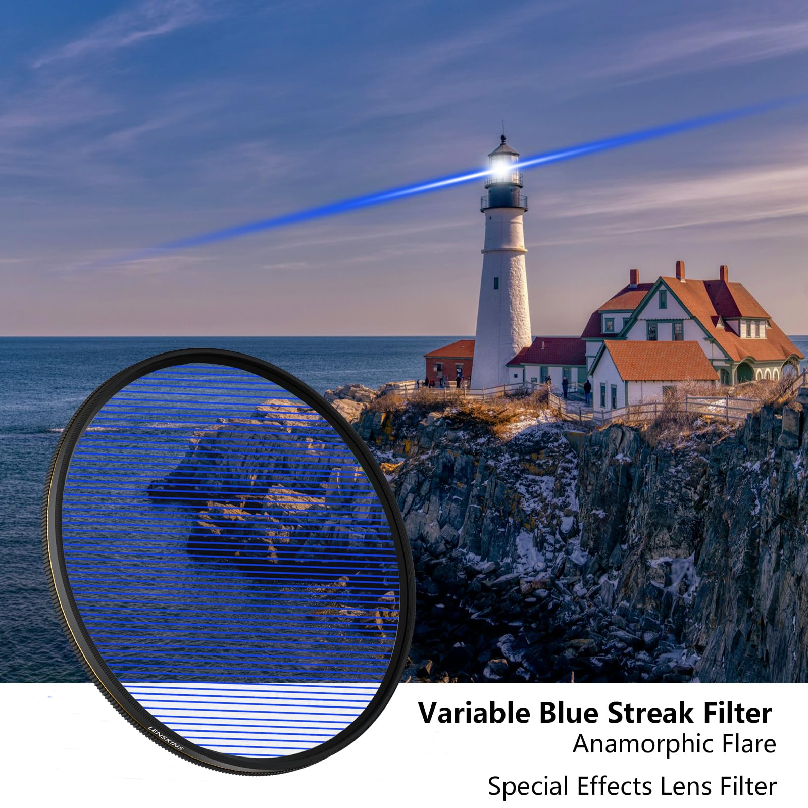Pig Iron Cinema Streak Filter Anamorphic Lens Flare Effect Premium B270 Im Gegensatz zu herkömmlichen Streifenfiltern erzeugen Pig Iron Blue Streak -Filter einen randomisierteren natürlichen Effekt und erhalten viel detaillierter Teil der Cinema Line von Premium-Filtern von Pig Iron, erzeugt der Cinema Streak Filter ein anamorphes Flare bei Verwendung eines normalen Objektivs. Ideal für Szenen mit Stadtlichtern, Verkehr, Kerzen, Glühbirnen usw. Part of the Cinema Line of premium filters from Pig Iron, the Cinema Streak filter creates an anamorphic style flare when using any normal lens. Unlike traditional streak filters, Pig Iron Blue Streak filters create a more randomized natural effect and maintain much more detail Pig Iron Anamorpher Filter 82mm CINEMA STREAK Cine Lens Flare Hochwertiges Schott B270 optisches Glaselement für maximale Klarheit. Maximale Lichtdurchlässigkeit Wasserdicht Kratzfest.
