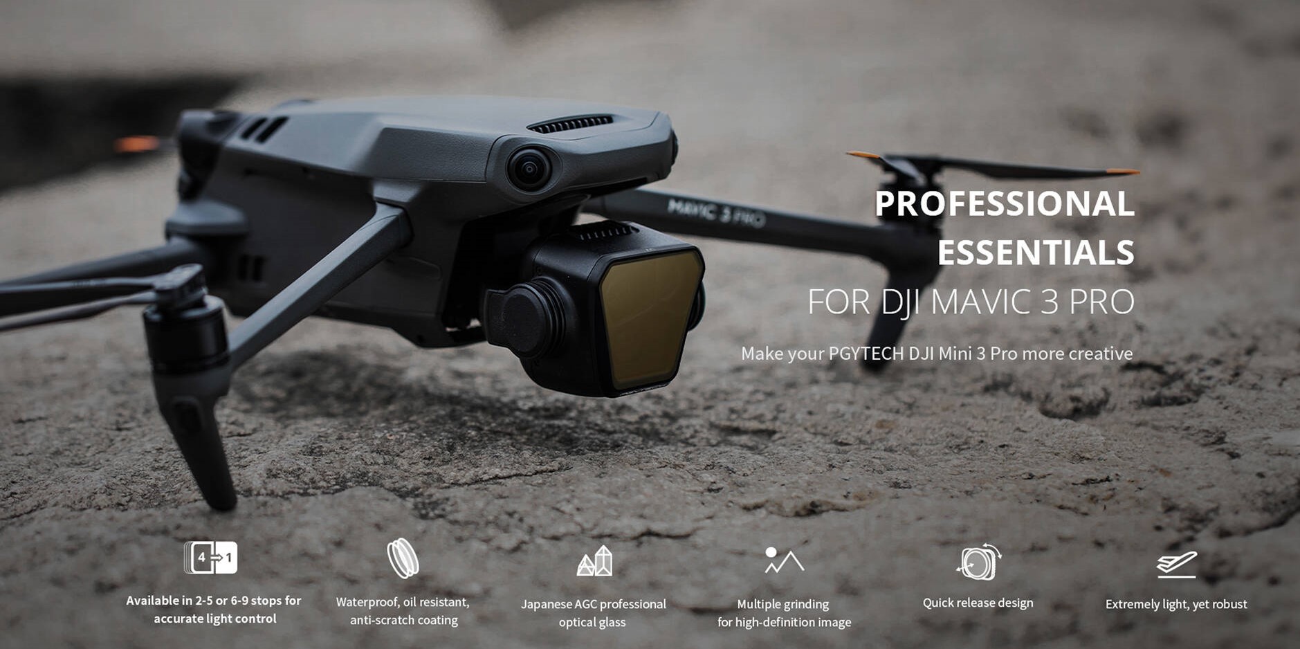 Der ND16-Filter reduziert die einfallende Lichtmenge um vier Blenden. Die PGYTECH ND-Filter, die auch als Graufilter bezeichnet werden, sind ein unverzichtbares Zubehör für die DJI Mavic 2 Pro Drohne, da sie ebenso wie bei normalen Foto- und Videokameras die Menge des auf den Sensor treffenden Lichts reduzieren und dadurch überbelichtete Teile in Ihren Aufnahmen vermeiden. Die Filter sind aus qualitativ erstklassigem optischem Glas und Luftfahrtaluminium gefertigt und haben daher ein sehr geringes Gewicht, um die Drohne nicht zu stark zu belasten. Der ND8-Filter korrigiert um 3 Blendenstufen und sorgt für perfekten Belichtungsausgleich bei hohen Kontrastumfängen, etwa bei Sonnen-Auf- und -untergängen. PGYTECH hat in diesem Set die vier wichtigsten Neutral Density-Filter zusammengefügt: von ND8 bis ND64., Das Set ist nämlich dazu gedacht, beim Filmen mit Ihrer Drohne eine große Lichtmenge zu korrigieren. Der ND32-Filter reduziert die einfallende Lichtmenge um fünf Blenden und eignet sich hervorragend für lichthelle Tage. Produktbeschreibung Das komplette PGYTECH ND-Filterset für die DJI Mavic 2 Pro Drone wurde speziell dafür entworfen, um unter allen Bedingungen das Beste aus Ihrer DJI Mavic 2 Pro Drone herauszuholen. Dji Avatar 2 Nd-filterset DJI Mavic 3 Classic - ND-Filterset (ND8/16/32/64 Dji Neo 2 Filter Wiegt nur 2 Gramm pro Stück Mithilfe eines ND-Filters, der auch als Graufilter bezeichnet wird, korrigieren Sie die Belichtungszeit der Drohnenkamera, wenn zu viel Licht gegeben ist, sodass Ihr Bild eine echte kinematographische Ausstrahlung erhält. Pgytech Filter Combo ND PRO für DJI Mavic Mini | Kaufen auf Ricardo Beim Filmen mit Ihrer Drohne sorgt ein Graufilter auf diese Weise dafür, Sie bei grellem Licht längere Verschlusszeiten verwenden können, was für die Einstellung der richtigen Bildfrequenz Ihrer Kamera von Bedeutung ist. Die Verschlusszeiten bei Videoaufnahmen sind nämlich anders als bei einer Fotokamera.