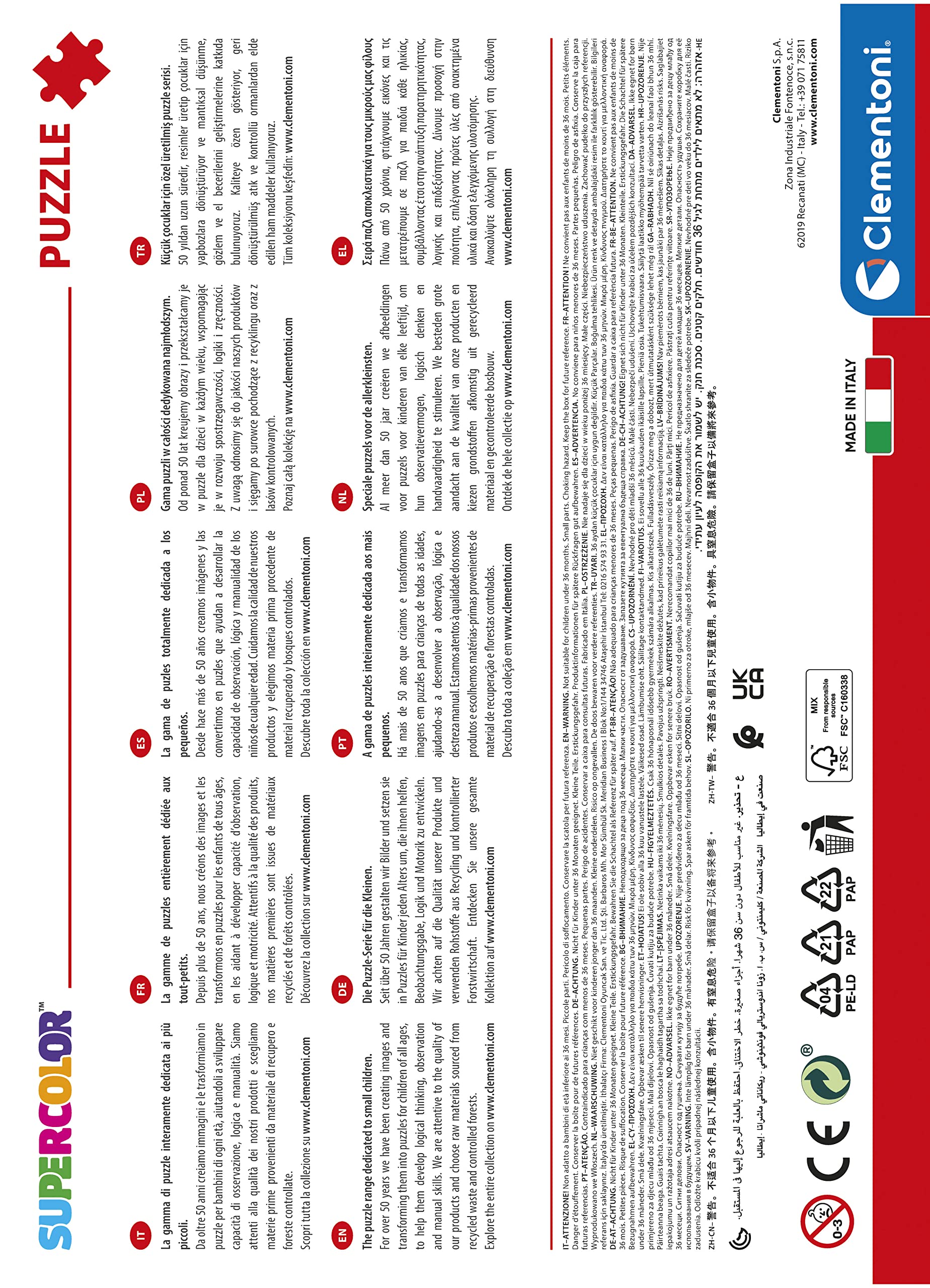 Bunter Puzzlespaß: Die Supercolor Puzzle Kollektion lässt beliebte Charaktere und Themenwelten (Puzzle-)Teil für Teil lebendig werden und besticht mit einer exklusiven Drucktechnik für besonders farbintensive Bilder Frame Me Up Ohne Kleber lässt sich das Lieblingspuzzle dank eines speziellen Kartonrahmens ganz leicht an die Wand hängen. Nach dem Puzzeln entsteht auf der Rückseite das Motiv als Ausmalbild. Clementoni steht bereits seit über 60 Jahren für Kreativität, Leidenschaft und Qualität. l★l★l★l★ Clementoni Supercolor Disney Prinzessinnen (180 Teile) Test (Rechteck, Kinderpuzzle), Erfahrungen mit 5 Angeboten, ab 9,94€, echte Käufermeinungen, große Shopvielfalt & Infos auf (15.11.2025 My First Puzzle Das erste Puzzle für die Kleinsten ist mit den geformten, festen und extra großen Puzzleteilen perfekt geeignet für kleine Kinderhände. Bereit zum gemeinsamen Puzzeln? Happy Colour Double Face Doppelt farbenfroher Puzzle-Spaß mit zwei Seiten für ein extra kreatives Erlebnis! Snoopy Puzzle Clementoni Supercolor Princess Puzzle - Puzzle 180 Pieces From 7 Years - Colourful Children's Puzzle With Special Luminosity And Colour Intensity - Skill Game For Children 29787 Puzzle Disney Prinzessinnen Meter Puzzle Zusammengesetzt verwandeln sich die Meter Puzzle in eine Messleiste für die Wand. Puzzle Mermaids Clementoni-29307 180 Teile Puzzle Meerjungfrauen Speziell entworfen für Kinder, fördern die Legebilder Merkfähigkeit, Konzentration, Denkvermögen sowie manuelle Fähigkeiten. Intensive Farbwelt: Das ansprechende Motiv des 180 Teile Puzzles begeistert mit leuchtenden und schillernden Farben und lädt kleine Puzzle-Liebhaber zum Rätseln ein – ein besonderer Spielspaß mit Freunden, Geschwistern oder Eltern Puzzle Mermaids von Clementoni mit 180 Teile ab 6.95 €. Eine Riesiege Wahl Puzzle Meerjungfrauen. Gratis lieferung ab 35 So verschönert der Lieblingsheld oder die Lieblingsprinzessin das Kinderzimmer und Ihre Kleinen können ihr Puzzle-Talent stolz präsentieren. Mario Clementoni gründete das Unternehmen mit einem Glauben, den wir seitdem weitergeben und der Kinder und Erwachsene auf der ganzen Welt inspiriert – der Glaube an die Kraft des Spiels: „Jedes Kind widmet dem Moment des Spielens die ganze Aufmerksamkeit und Konzentration, zu der es fähig ist, und erinnert sich gut an die Dinge, die es mit Freude tut. Intensive Farbwelt Das ansprechende Motiv des 180 Teile Puzzles begeistert mit leuchtenden und schillernden Farben und lädt kleine Puzzle-Liebhaber zum Rätseln ein ein besonderer Spielspaß mit Freunden, Geschwistern oder Eltern, Bunter Puzzlespaß Die Supercolor Puzzle Kollektion lässt beliebte Charaktere und Themenwelten (Puzzle-)Teil für Teil lebendig werden und besticht mit einer exklusiven Drucktechnik für besonders farbintensive Bilder, Lieferumfang 1 x Supercolor Meerjungfrauen, farbenfrohes Denkspiel für Kinder ab 7 Jahren von Clementoni, Hervorragende Druckqualität Das kunterbunte Legespiel besteht aus 180 Teilen und hat eine Legegröße von 48,5 x 33,5 cm die hohe Qualität der Puzzleteile sorgt für Robustheit und langanhaltende Freude mit dem neuen Puzzle, Für kleine Puzzle-Fans Die kräftigen Farben und das liebevoll gewählte Motiv des Kinderpuzzles bieten ein unvergessliches Spielerlebnis und helfen Kindern dabei, Beobachtungsfähigkeit, Logik und Geschicklichkeit zu verbessern 104 + 3D Model Die absoluten Lieblingscharaktere, wie Lightning McQueen, warten in 104 Teilen darauf zum Leben erweckt zu werden. Die magischen Highlights, die das fertige Puzzle verzieren, sorgen für Spaß, Begeisterung und strahlende Kinderaugen. So bringt Großwerden mit den Lieblingshelden Spaß!