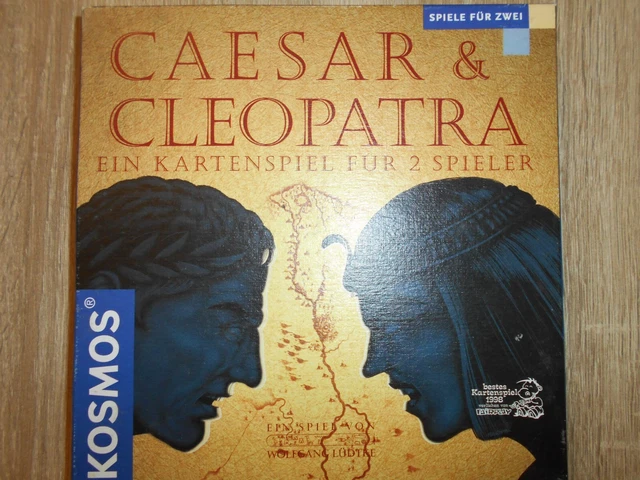 KOSMOS veröffentlicht das Zwei-Personen-Spiel Artikelbeschreibung des Verkäufers Das Brettspiel KOSMOS 691103 - Caesar & Cleopatra in der seltenen Metallbox ist ein spannendes Gesellschaftsspiel für Spieler ab 10 Jahren. Tauchen Sie ein in die Welt des antiken Ägyptens und erleben Sie taktische Herausforderungen und strategische Entscheidungen Cleopatra hingegen will diese davon überzeugen, dass es besser wäre, wenn Ägypten weitgehend unabhängig bliebe. Erleben Sie das römisch-ägyptische Kartendrama und ziehen Sie den Kopf ein, wenn sich hie und da mal der Zorn der Götter über den Streitenden entlädt! Rechtliche Hinweise Es handelt sich um einen Privatverkauf, deswegen besteht kein Recht auf Rückgabe, Widerruf, Gewährleistung oder Garantie. Nicht für Kinder unter 36 Monaten geeignet. Der Zweier-Spiel-Klassiker in Metallbox: Sie küssten und sie schlugen sich. Kosmos Caesar & Cleopatra - Beide haben die gleichen Karten, fragt sich nur, wer sie besser einsetzt., Inhalt: 74 Einflusskarten, 26 Aktionskarten, 21 Patrizierkarten, 8 Karten Vertrauensfragen, 6 Karten Einflussbonus, Warnhinweis: Achtung! Kosmos Pharaonenschatz KOSMOS 691103 - Caesar & Cleopatra - Metallbox Gebraucht Kaufen | Sonstige Günstig Auf Cäsar Und Cleopatra Spiel