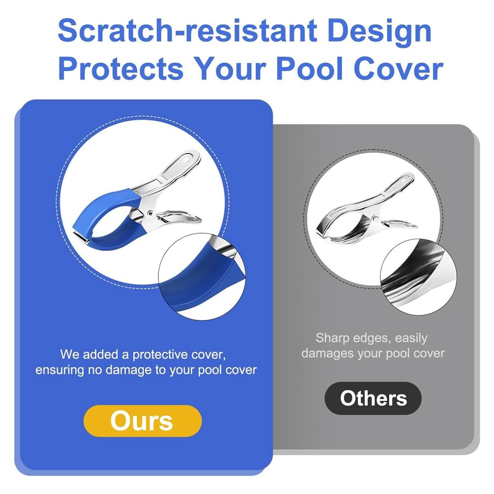 【Ausreichende Menge】 Sie erhalten 30 Stück Poolabdeckungsclips aus Edelstahl, die den täglichen Gebrauch und Ersatzbedarf Ihres Pools im Sommer erfüllen können. Weit verbreitet: Diese Edelstahlklemmen können verwendet werden, um Poolabdeckungen zu sichern oder Strandtücher, Outdoor-Zelte, Snack-Taschen, Steppdecken und mehr zu befestigen. Sicherer Halt, um zu verhindern, dass die Poolabdeckung von starkem Wind weggeweht wird Diese Poolabdeckungsclips halten starkem Wind stand, rosten nicht, sind haltbarer als Kunststoff-Clips und können die oberirdische Poolabdeckung fest fixieren. Der innere gerollte Rand ist glatt, rutscht nicht leicht ab, zerkratzt nicht leicht Kleidung und Poolabdeckungen Größe: Länge: 13 cm., Breite: 6,8 cm. Sie sind auch ideal für den Hinterhof, Bad, Küche oder Büro Material:Edelstahl. Wind-Schutz: Sie wurden speziell für windige Bedingungen entwickelt und verhindern wirksam, dass Ihre Pooldecke weggeweht wird und schützen so Ihren Pool vor Unrat und Verschmutzungen 6St Schwimmbad Abdeckungs Clips Für Oberirdische Pools, Solar Der Metallclip hat eine glatte Oberfläche und die Öffnungskante ist nach innen gerollt, wodurch Ihre Hände nicht leicht verletzt oder Ihre Kleidung beschädigt werden. Praktisches Design, kann Ihre Poolabdeckung fest fixieren 30 Stück Winddichte Edelstahl Pool Abdeckung Clips mit Kratzschutz Öffnung: 7,9 cm Lieferumfang: 30 x Poolabdeckungs-Clips., Anmerkung: 1., Bitte bestätigen Sie die Größe vor dem Kauf., 2., Die Größe kann aufgrund manueller Messung geringfügige Fehler aufweisen. Material:Edelstahl.