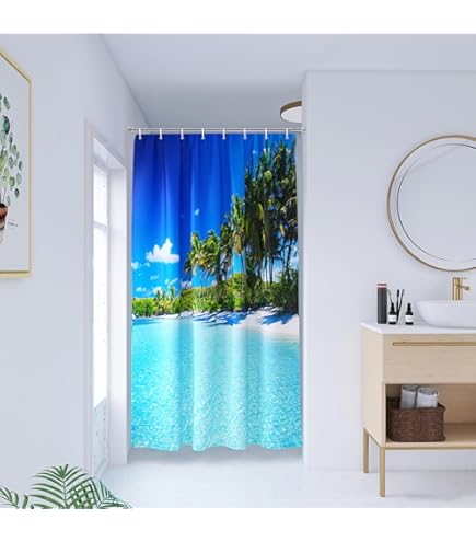 Duschvorhang Lustig COZZSNUGE Duschvorhang 183 X 183 Cm Blau Blätter, Blumen Botanisch Pflanze Duschvorhänge Anti-schimmel Wasserdicht Polyester Stoff Badvorhang Mit 12 Duschvorhangringen Duschvorhang Katze Material und Größe: aus 100 % hochwertigem, wasserdichtem Polyestergewebe, 182,9 cm lang x 182,9 cm breit. Einzigartiges Design: Entworfen mit Strandmuster-Drucktechnologie, lebendig und lebendig, verleihen Sie Ihrem Badezimmer ein neues Gefühl Strandgestaltung: Verwandeln Sie Ihr Badezimmer in eine Oase am Meer mit diesem Strandduschvorhang mit ruhigen blauen Meeres- und Stranddesigns. Vielseitige Verwendung: Mit den Maßen 183 x 183 cm eignet sich der Duschvorhang perfekt für Wohnungen, Schlafsäle und Hotels und kann als Raumteiler, Fenstervorhang oder Kulisse verwendet werden. Geruchlos und wasserdicht: Hergestellt aus 100 % Polyester, dieser Stoff ist frei von unangenehmen Gerüchen und ist so konzipiert, dass er sehr wasserdicht ist, um das Badezimmer trocken zu halten Omifly Strand-Duschvorhang, 183 x 183 cm (B x L), Ozean, Nignt (Aufgrund der manuellen Messung erlauben Sie bitte 1-2 cm Abweichung., ) Der Duschvorhang kann leicht von Hand oder in der Maschine gewaschen werden.