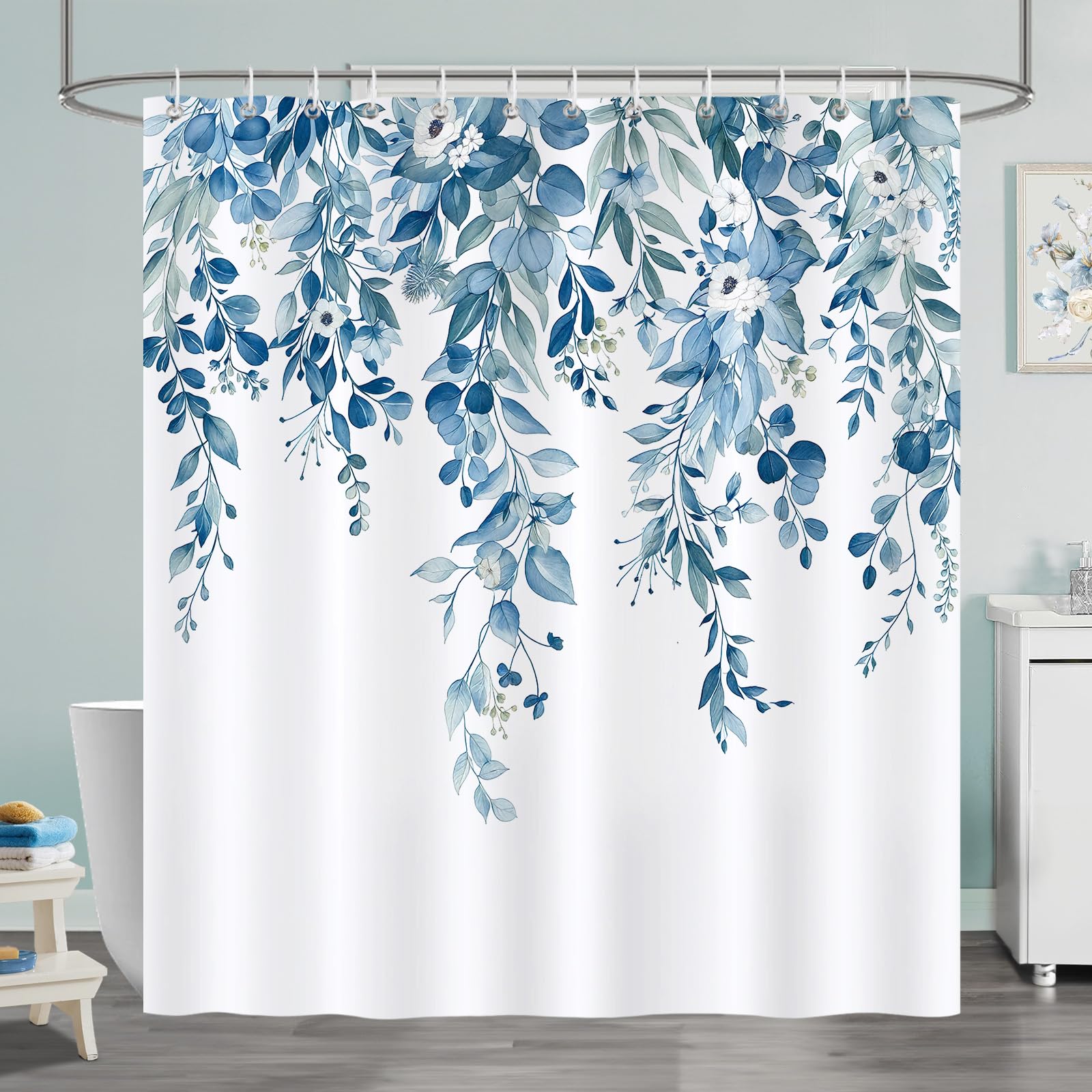 COZZSNUGE Duschvorhang 183 X 183 Cm Blau Blätter, Blumen Botanisch Pflanze Duschvorhänge Anti-schimmel Wasserdicht Polyester Stoff Badvorhang Mit 12 Duschvorhangringen