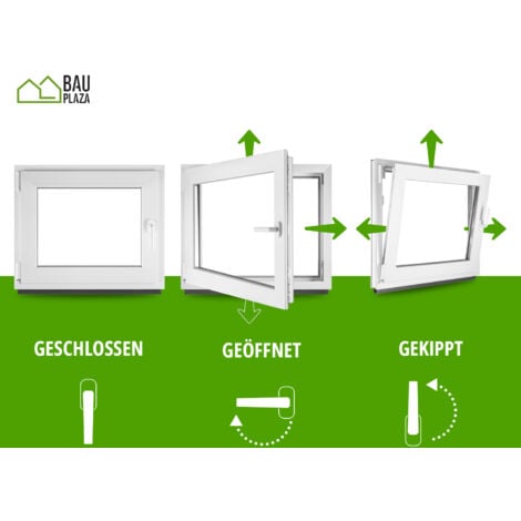 Fenster Kellerfenster Kunststofffenster Kunstoff Weiß BxH 100 X 120 Cm DIN Links - ALLE GRÖßEN - 2 Fach Verglasung BxH 1000 X 1200 Mm - Funktion Dreh- Kipp - BauPlaza