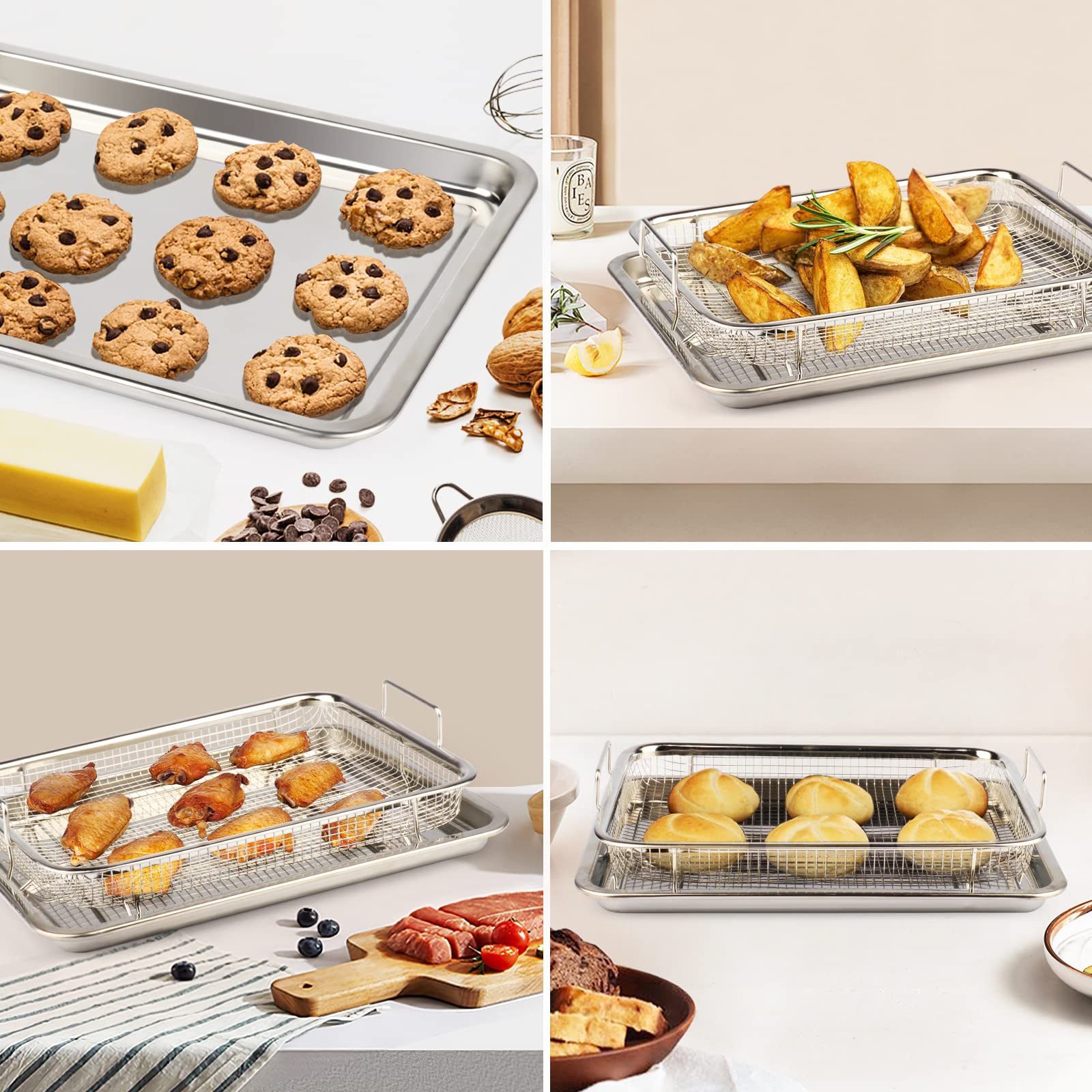 N.Gracia Luftfritteusenkorb Für Ofen, Backform, 39,4 X 29,5 Cm, Edelstahl-Crisper-Tablett Und Pfanne Mit 50 Stück Pergamentpapier, Edelstahl -Luftfritteusenkorb Zum Backen Grillen
