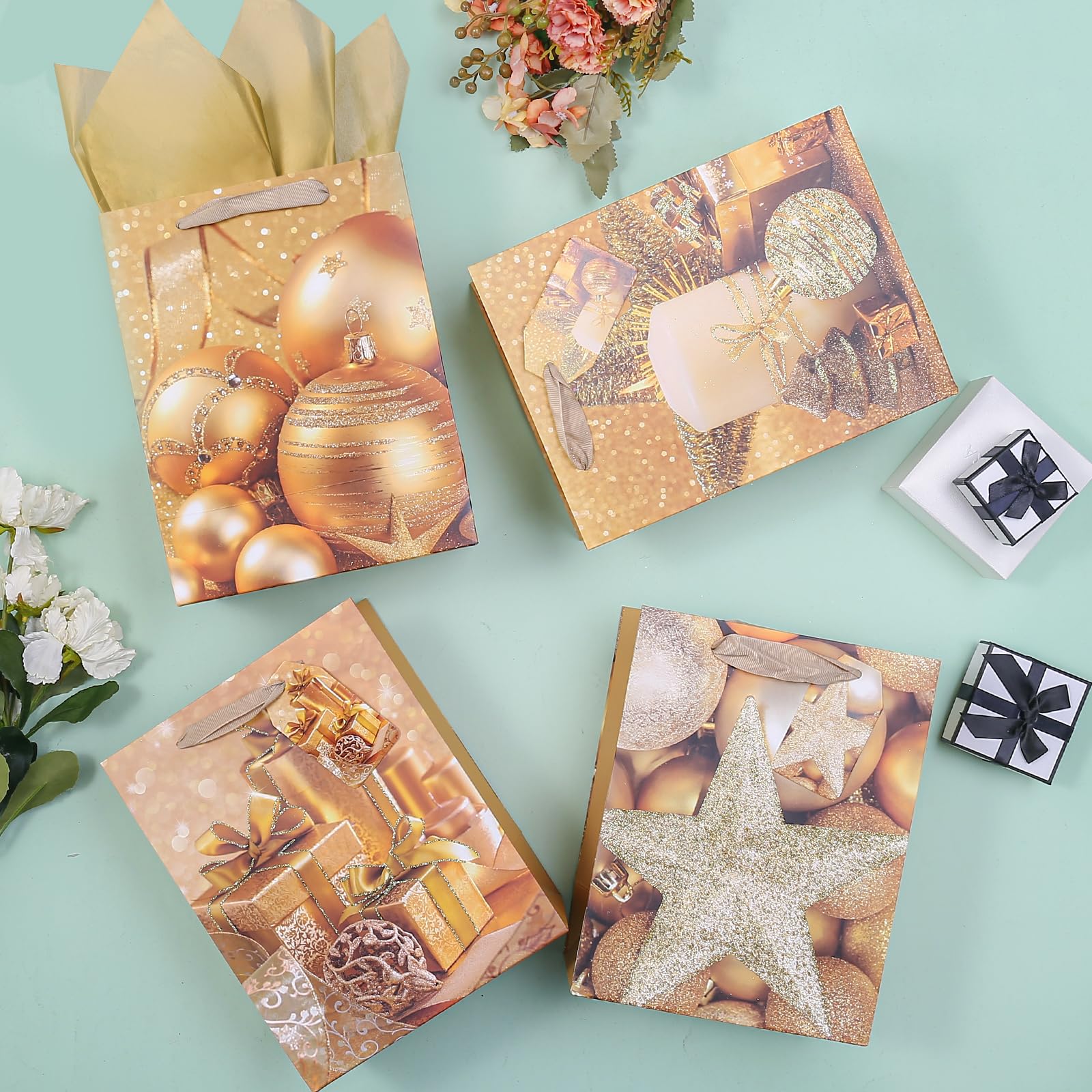 12 X 22,9 Cm Große Geschenktüten Mit Seidenpapier, Regenbogen-Glitzer