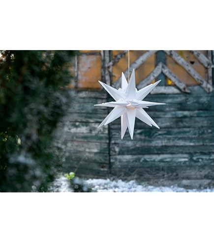 SCHNELLE INSTALLATION: Durch ein ausgeklügeltes Faltsystem ist ein kinderleichter Zusammenbau und einfaches Aufhängen durch die mitgelieferte Aufhänge-Öse gegeben. Dort finden Sie alles für Ihren Garten von A bis Z: - Holz Dekoration, Vogelhäuser - Metall Dekoration wie Edelrost Kronen, Tiere, Schilder, Sichtschutz oder Bronze Figuren - Steinfiguren, Stein Skulpturen, Natursteine, Findlinge, Wasserspiele und Brunnen, Windspiele - Pflanzgefäße wie Blumentöpfe oder Amphoren - Rasenkanten, Tier Gehege, Mauern, Wasserfässer - Gabionen, Kräuterspiralen, Hochbeete oder Kräuterbeete zum Bepflanzen - Weihnachtsdekoration wie LED Weihnachtssterne, Lichterketten Warnhinweise Achtung: Nur für den Außen- und Innenbereich geeignet. FLEXIBEL: Was die Platzierung des Weihnachtssterns betrifft, sind Sie flexibel und nicht eingeschränkt was Ihre Kreativität angeht, denn durch das 4 m lange Kabel können Sie den Stern an jedem Ort platzieren. Herrnhuter Sterne LED WEIHNACHTSSTERN 3D 18 Zacken 55 Cm Inkl. LED-Leuchte + Timer + Trafo Leuchtstern Außenstern Faltstern Adventsstern Wetterfest Für Außen Und Innen 5m Kabel Von Dekowelt (Weiß Weihnachtsstern Außen Batterie Der Leuchtstern hat 18 Spitzen, ist aus Kunststoff PP (Polypropylen) und hat einen Durchmesser von ca., 55 cm. Das Kabel ist für außen Schutzklasse IP-44., ENERGIESPAREND: Jeder Stern wird von innen beleuchtet mit einer mitgelieferten LED-Birne. MATERIAL und GROESSE: Der Leuchtstern hat 18 Spitzen, ist aus Kunststoff PP (Polypropylen) und hat einen Durchmesser von ca., 55 cm. Geschirr und andere Küchenausstattung günstig online kaufen bei Möbel & Garten. PERFEKTE WEIHNACHTSDEKORATION: Dieser LED Stern ist Winter wie Sommer eine stimmungsvolle Innen- und Außendekoration. Weihnachtsstern Außen Produkt-Highlights - Ideal für die Weihnachtszeit - Auch als perfektes Geschenk geeignet - Erhältlich in unterschiedlichen Farben - Einfach aufhängen - Für Indoor und Outdoor - Schnelle und unkomplizierte Installation Technische Details - LED-Kunststoffstern, 18 Zacken, Durchmesser ca. Dekorieren Sie Ihr Zuhause mit den 3D LED-Leuchtsternen und genießen Sie ein beruhigendes Ambiente. Bei schlechter Witterung vom Stromnetz trennen. WETTERFESTIGKEIT: Der Weihnachtsstern ist wetterfest sowie frost-resistent und UV-beständig. Die Kabelfarbe ist schwarz. Halten Sie den Stern von brennbaren Materialien fern. Außenstern 3D 55-60 cm mit LED, mit Kabel 7m Adventsstern, LED auswechselbar, geschlossen - kein Faltstern, wetterfest, Balthasar (weiß