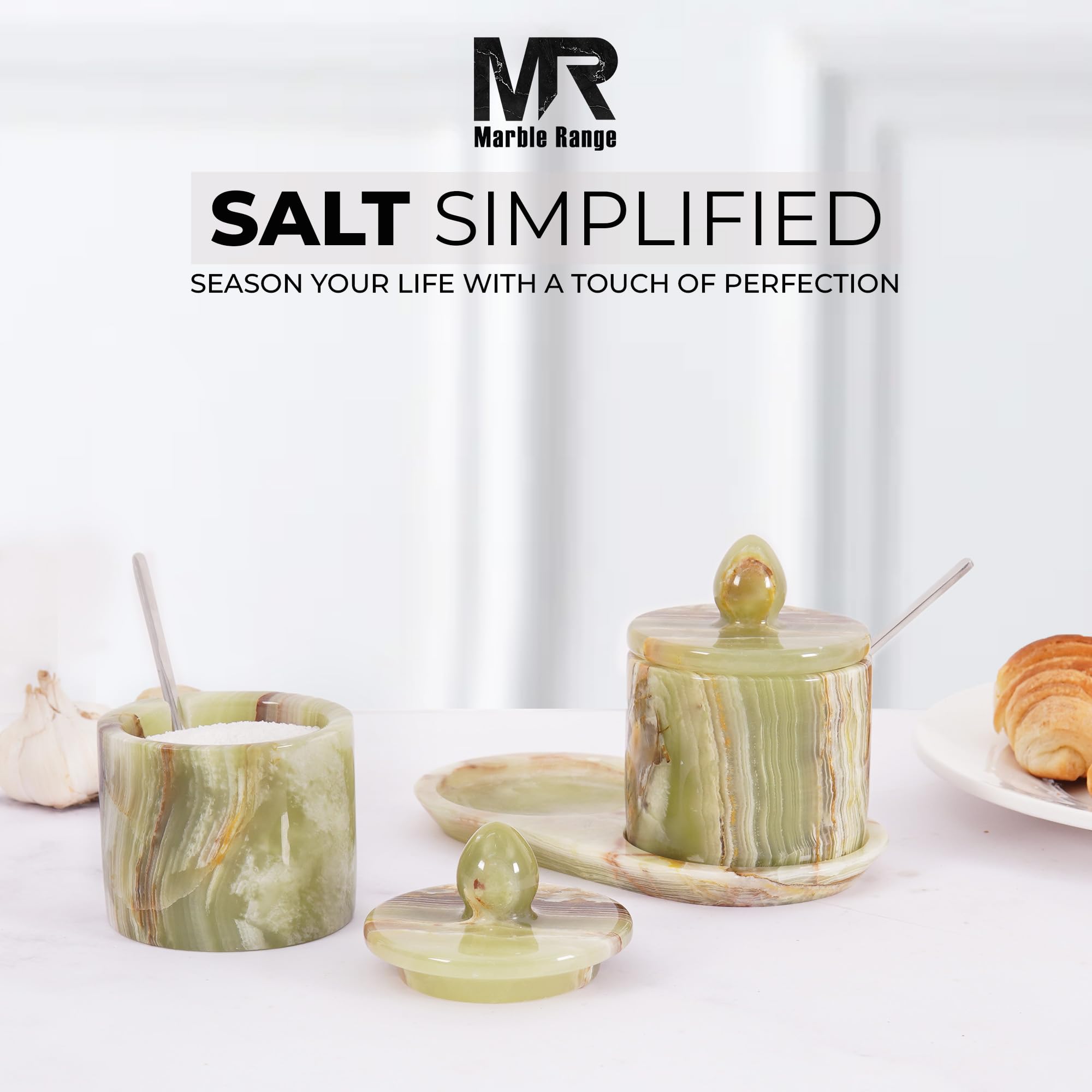 SPESHSTONES Marmor-Salzkeller Mit Deckel Und Löffel, 7,6 Cm, Ozean-Stein, Salzbox Für Gewürze, Zuckerdose Und Flockiges Salz, Dekoratives Gewürzglas & Aufbewahrungsbehälter Für Kaffee, Küche