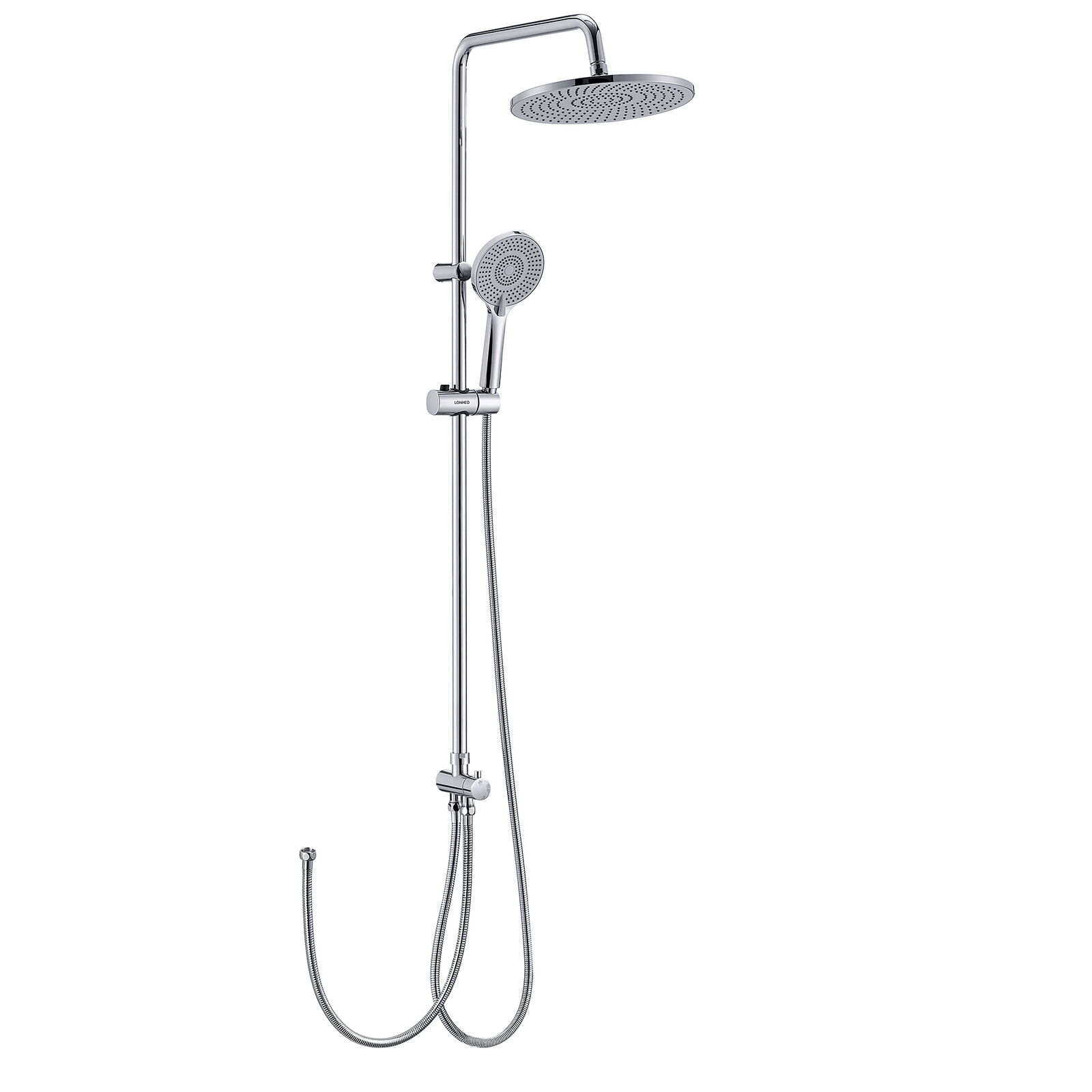 Thermostatfunktion: Ein eingebauter Thermostat reguliert die Temperatur konstant bei 38 Grad, um Verbrennungen vorzubeugen und für ein ausgeglichenes Duscherlebnis zu sorgen. Sie können mit Vertrauen installieren und wissen, dass dies durch die lebenslange Garantie von Gotonovo Wasserhahn gestützt wird. Duschstange Mit Brause Duschgarnitur, 20,3 Cm, Regenduschkopf, 2 Kreuzknöpfe, Mischbatterie Duschsystem Ohne Armatur Shower Head 2 Wege Therostat Duscharaturen Set, ultradünner... Größe: 20,3 cm Duschkopf, Duschhöhe ist verstellbar von 80 cm bis 120 cm. Sie bietet fünf verschiedene Strahlarten, die leicht durch Drücken eines Knopfes am Griff umgeschaltet werden können, um Ihr Duscherlebnis zu personalisieren und zu verbessern. Kalkablagerungen lassen sich durch einfaches Überwischen mit den Fingern leicht entfernen, was die Pflege dieses Duschsystems besonders benutzerfreundlich macht. 20.3 cm Duschsystem - Duschventil Kit Regendusche Wasserhahn Set Umschalter zwischen oberer Dusche und Handbrause, entweder eine funktioniert oder die andere. Material: gebürstetes Nickel-Messing, läuft nicht an und korrosionsbeständig Finish: gebürstetes Nickel Montage: Wandmontage, 2 Löcher. Kommt mit allen Montagezubehör., Service:Lebenslange Garantie. Moderne Badezimmer-Duscharmatur aus gebürstetem Stahl für die Wandmontage, hat eine gebürstete Nickel-Finish, um Korrosion und Anlaufen für den gesamten Wasserhahn zu widerstehen, hat eine 20,3 cm obere Dusche und Handstrahl, geeignete Porengröße ist zwischen 13 cm und 17 cm verstellbar. Material: gebürstetes Nickel-Messing, schützt vor Anlaufen und Korrosion durch den täglichen Gebrauch. Installation: Wandmontierte 2 Löcher Installation, Lochmitte: 150 mm, Lieferung mit verstellbarem Adapter, um den Abstand zwischen den Montagelöchern zwischen 13 cm und 17 cm anzupassen. Umschalter zwischen Duschkopf und Handbrause, entweder eine funktioniert oder die andere. Genießen Sie nach einem langen Arbeitstag eine belebende Dusche mit Ihrer neuen Duschgarnitur, ob mit prickelnder Regendusche oder in Form einer Druck-Massage über die Handbrause, ganz nach Ihren Bedürfnissen Lieferumfang: 1 x Installationsanleitung 1 x Runder Duschkopf (20 cm Durchmesser) 1 x Runde Handbrause (12 cm Durchmesser) 1 x Edelstahl Schlauch mit Anti-Knickschutz 1 x Duschstange aus Edelstahl 1 x Thermostat 1 x Handbrausehalter 2 x Winkeladapter für die Wandmontage Dichtungen und Befestigungselemente InstallationszubehörBestellen Sie jetzt und verwandeln Sie Ihr Bad in eine Oase der Entspannung mit der perfekten Kombination aus Design und Funktionalität!