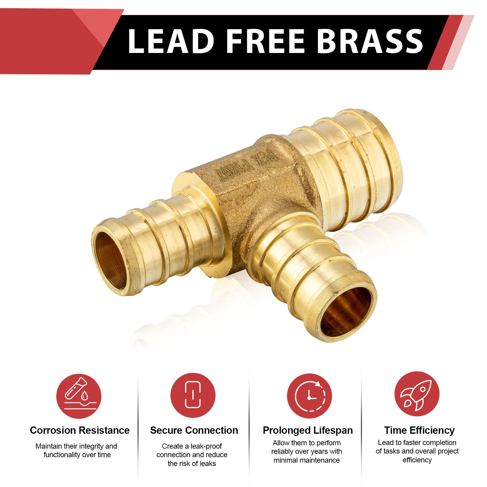 10 Stück Efield 1,9 Cm X 1,27 Cm X 1,27 Cm PEX Reduzier-T-Stück Schlauchverbinder Aus Messing – Bleifrei