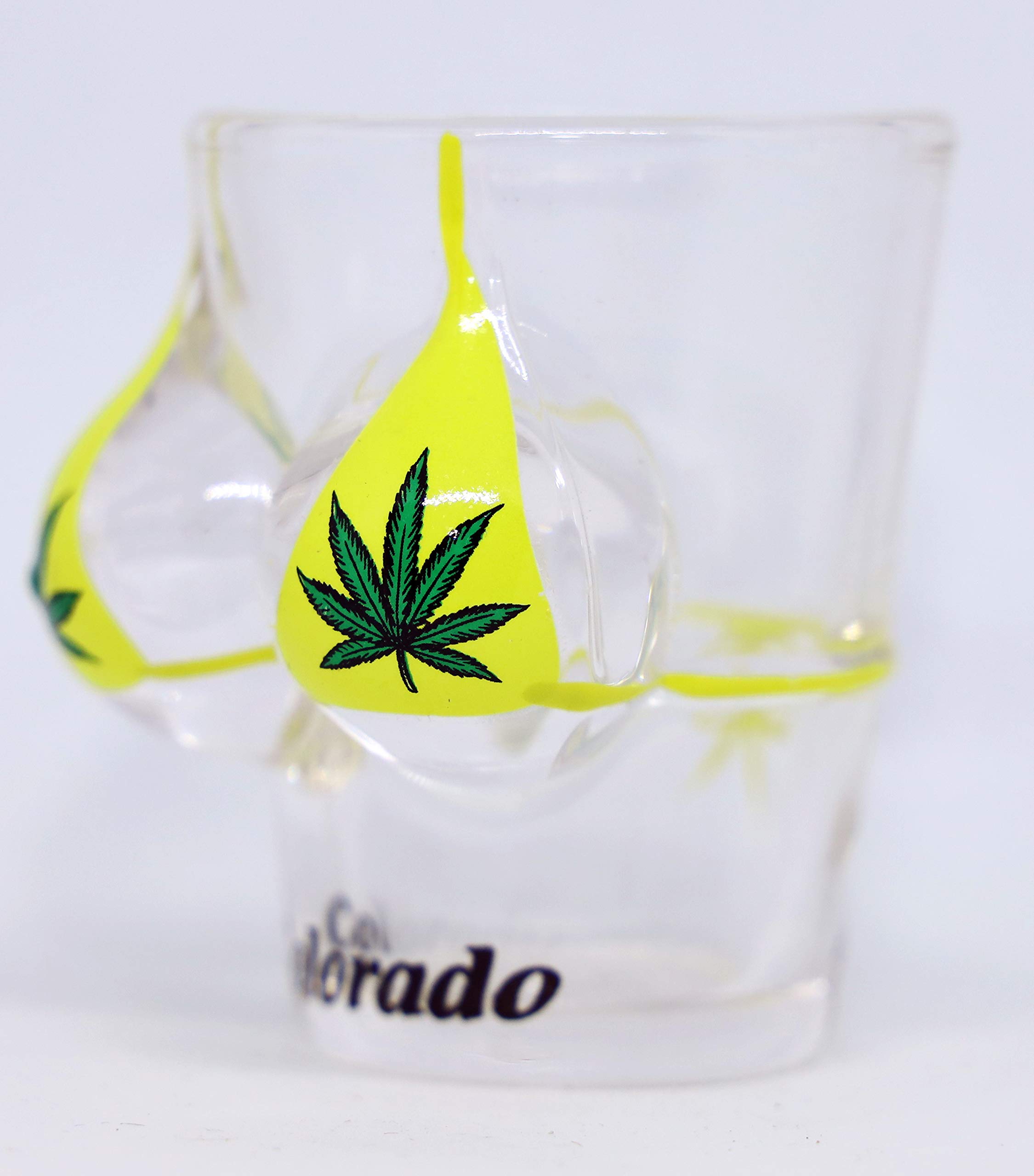 Colorado Pot Leaf Bikini Bust 3D Shot Glass